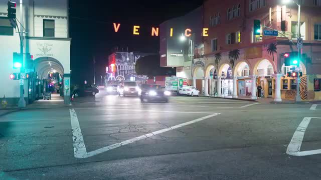 Time lapse of urban apartment building in Los Angeles at night