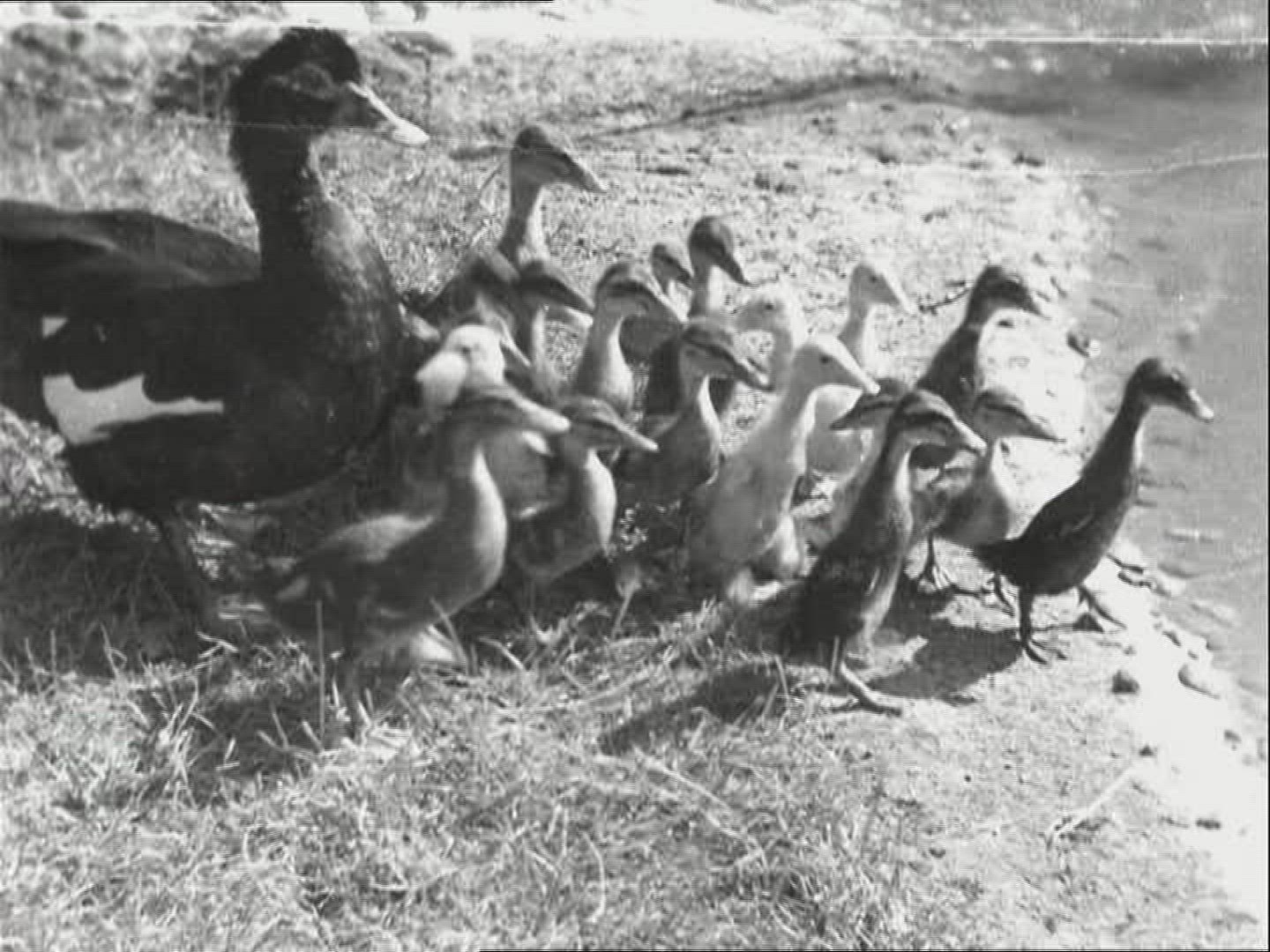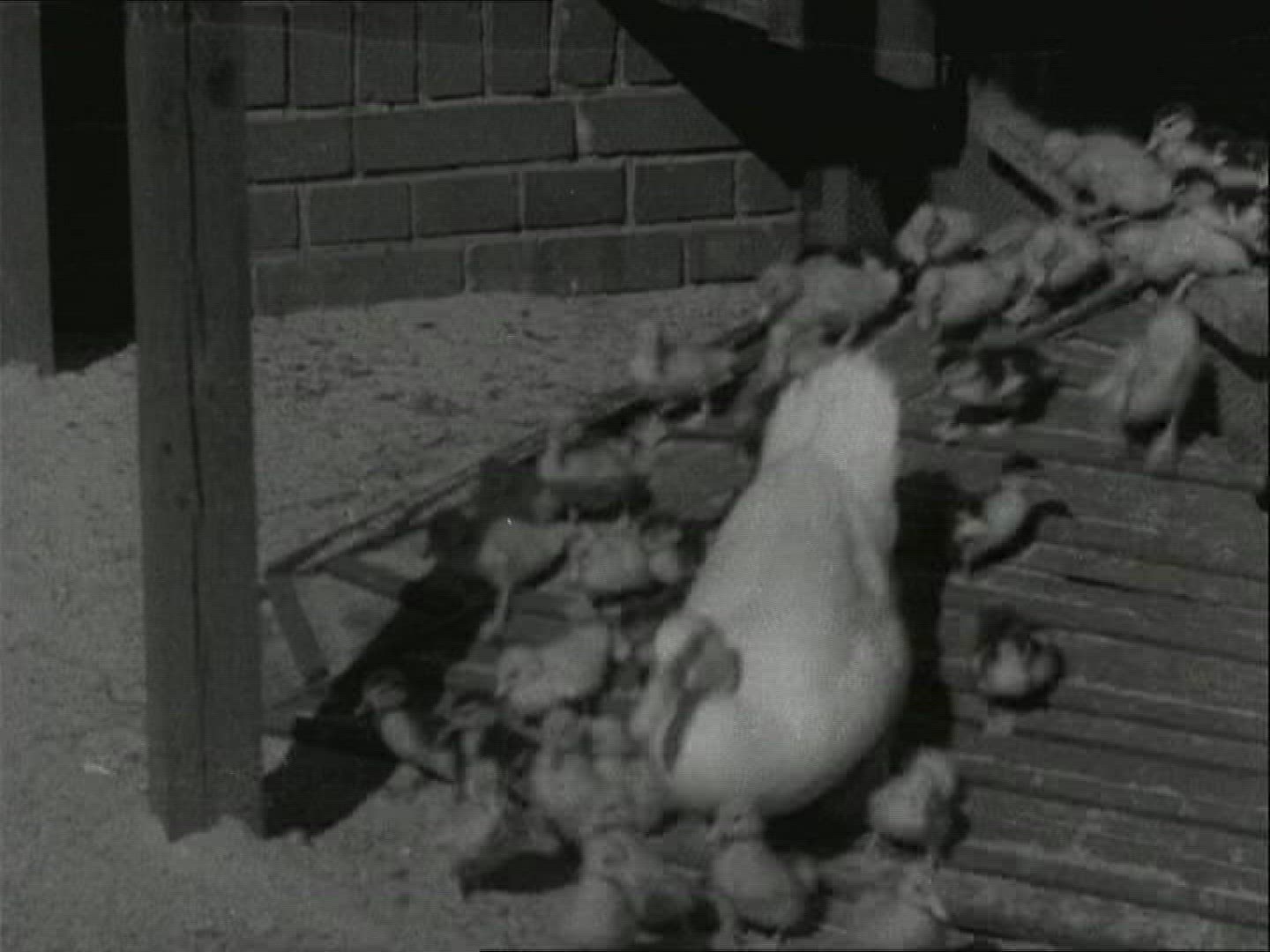 1956: Ireland: SHEEPDOGS steal the show at the Irish Kennel Club's annual meet in Limerick. Scott and Nell team to show their skill; not on sheep; but on ducks - and there's nary a skitter or a quack as they herd their feathered charges.