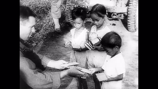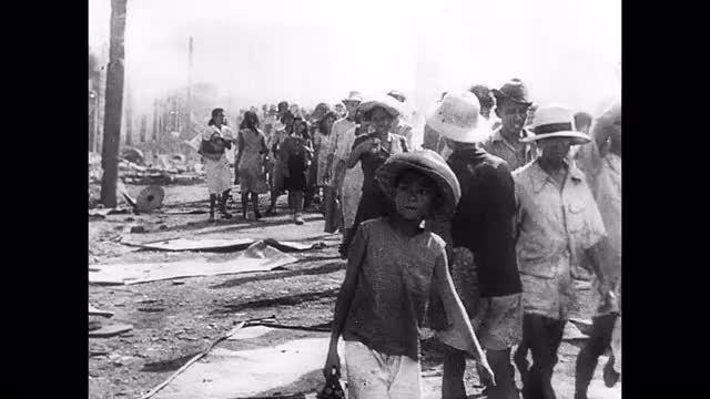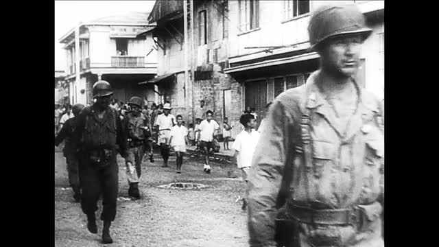 1944; Manila: U. S. troops liberate Manila. General MacArthur inspects areas in the captured city