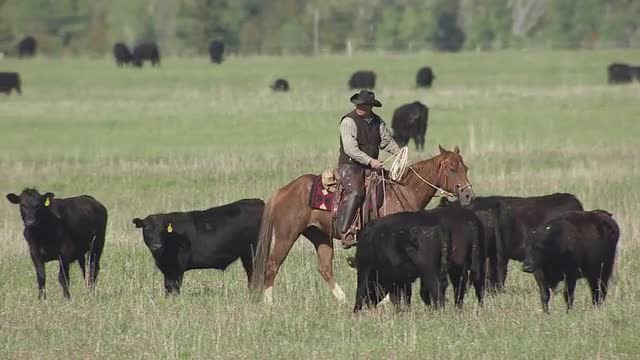 962414 - Calf gets branded, kicks cowboy off, 4k60