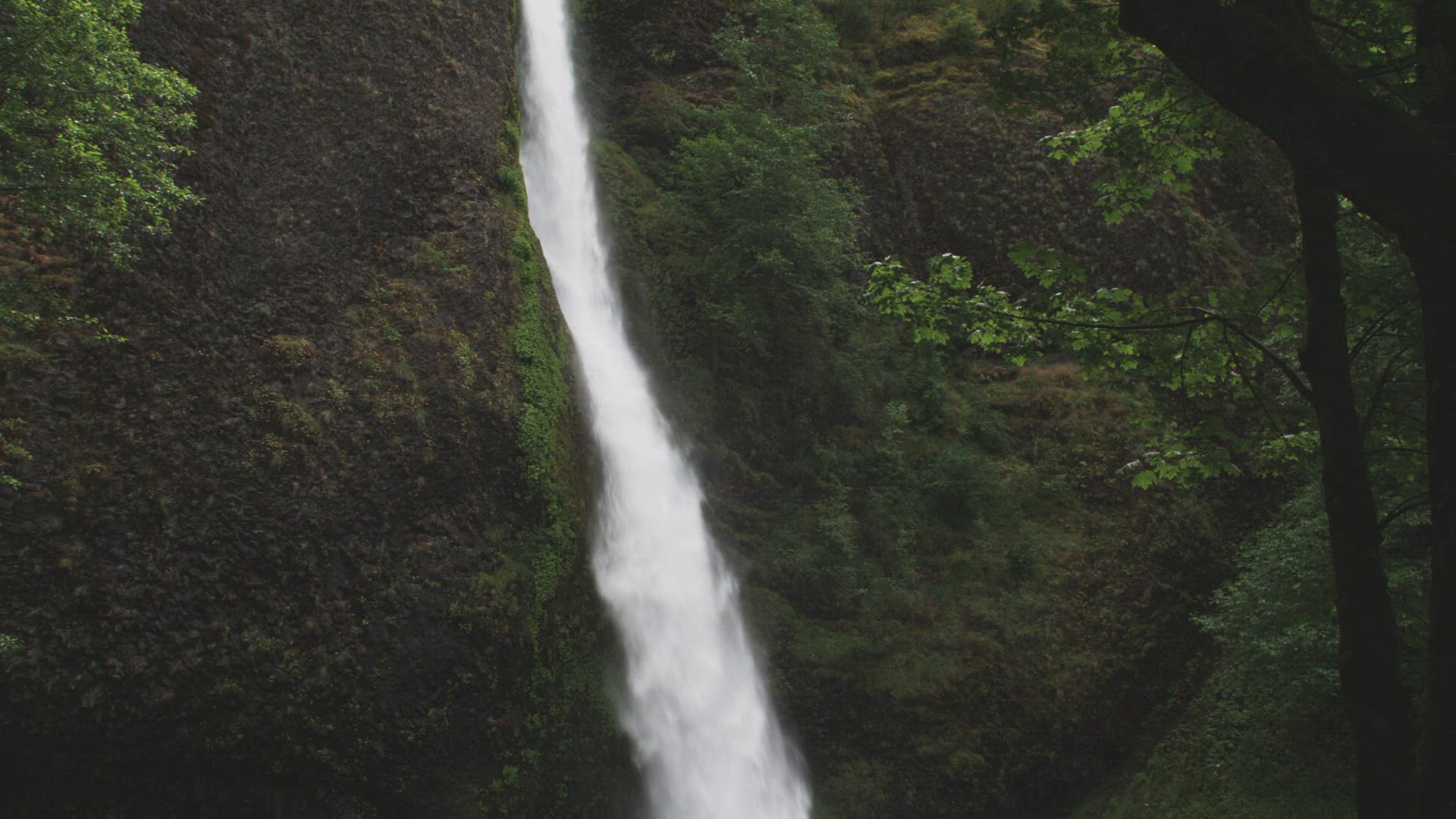 Pan across a ragging, white water river.