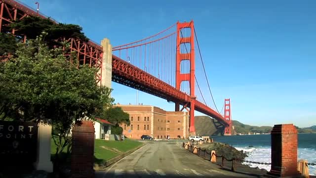 Pathways beneath Golden Gate Bridge,filmed in stereoscopic 3D Clip contains 3D HD Anaglyph version, left HD camera stream and right HD camera stream