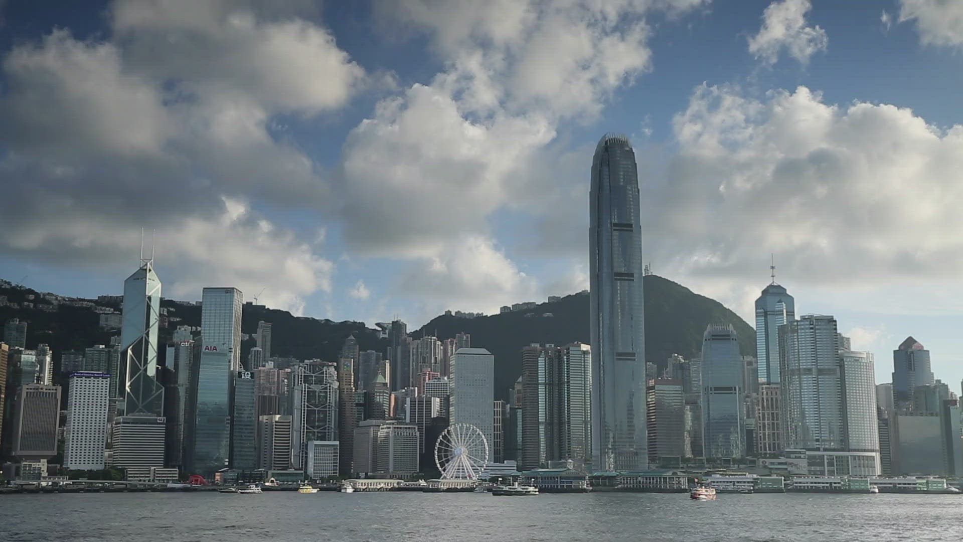 View of Ferris wheel and Tsim Sha Tsui skyline from International Finance Centre (IFC); Hong Kong; China; Asia