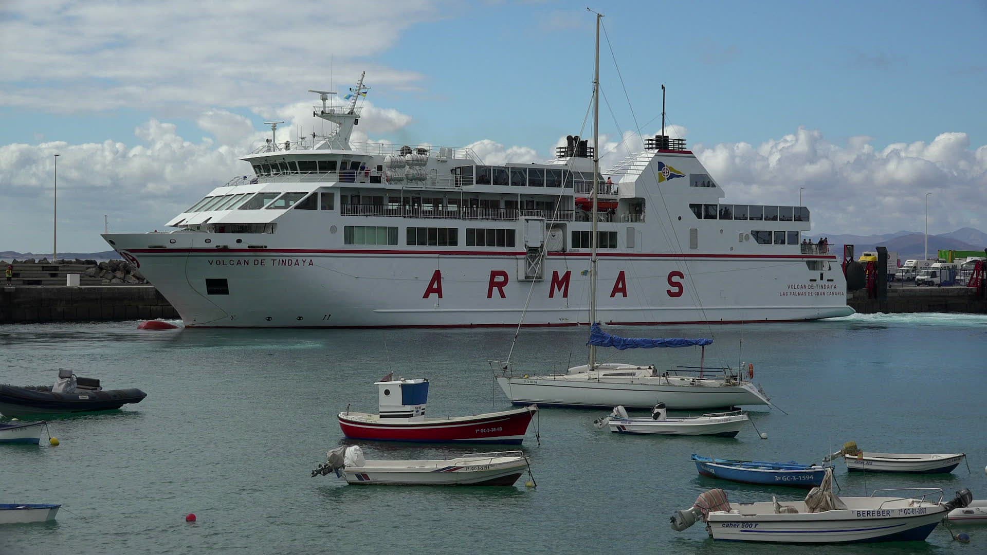 Fuerteventura ferry in the harbour of Playa Blanca; Lanzarote; Canary Islands; Spain; Atlantic; Europe