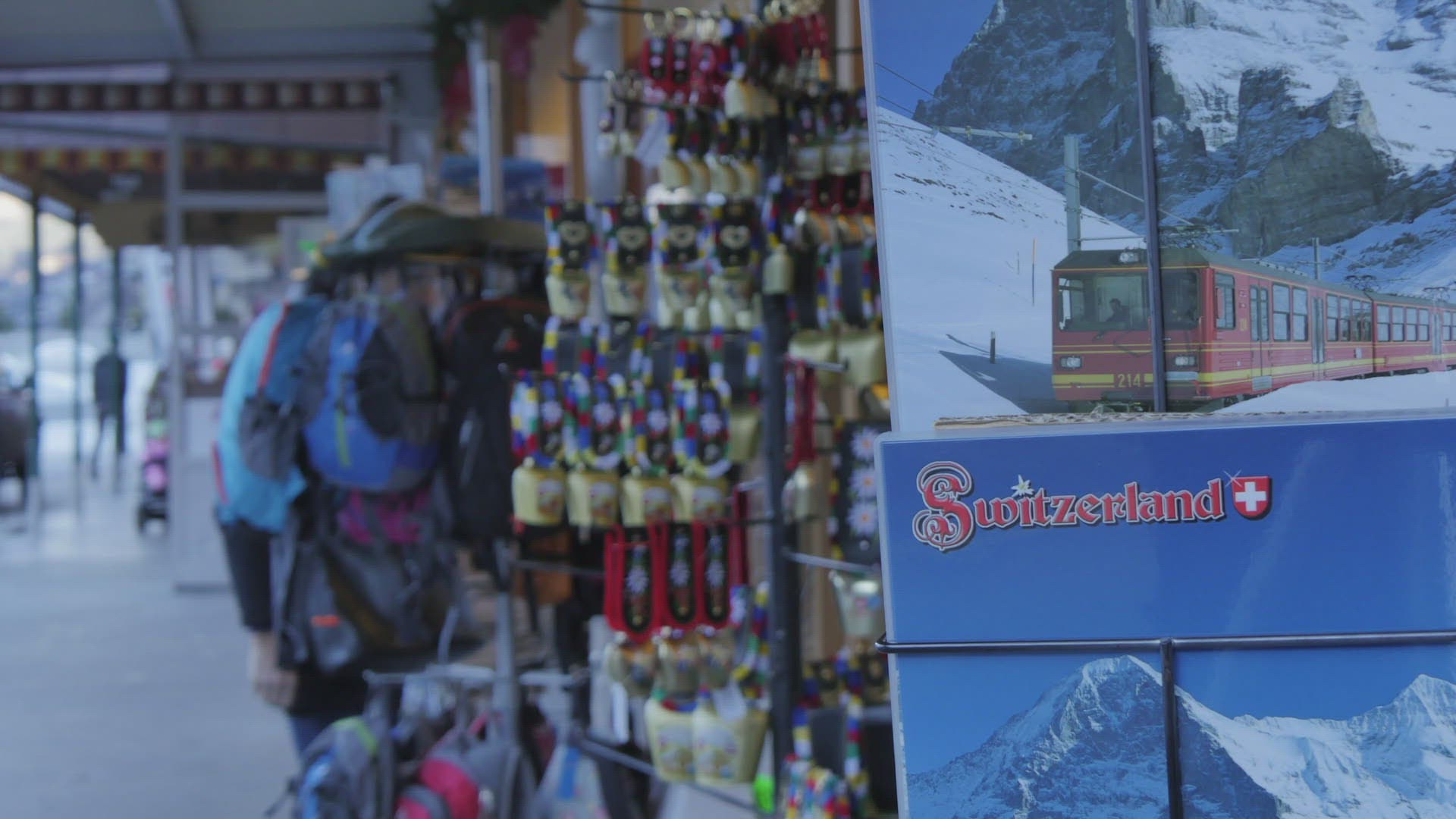 Souvenir Swiss cow bells on the main street; Grindelwald; Jungfrau region; Bernese Oberland; Swiss Alps; Switzerland; Europe