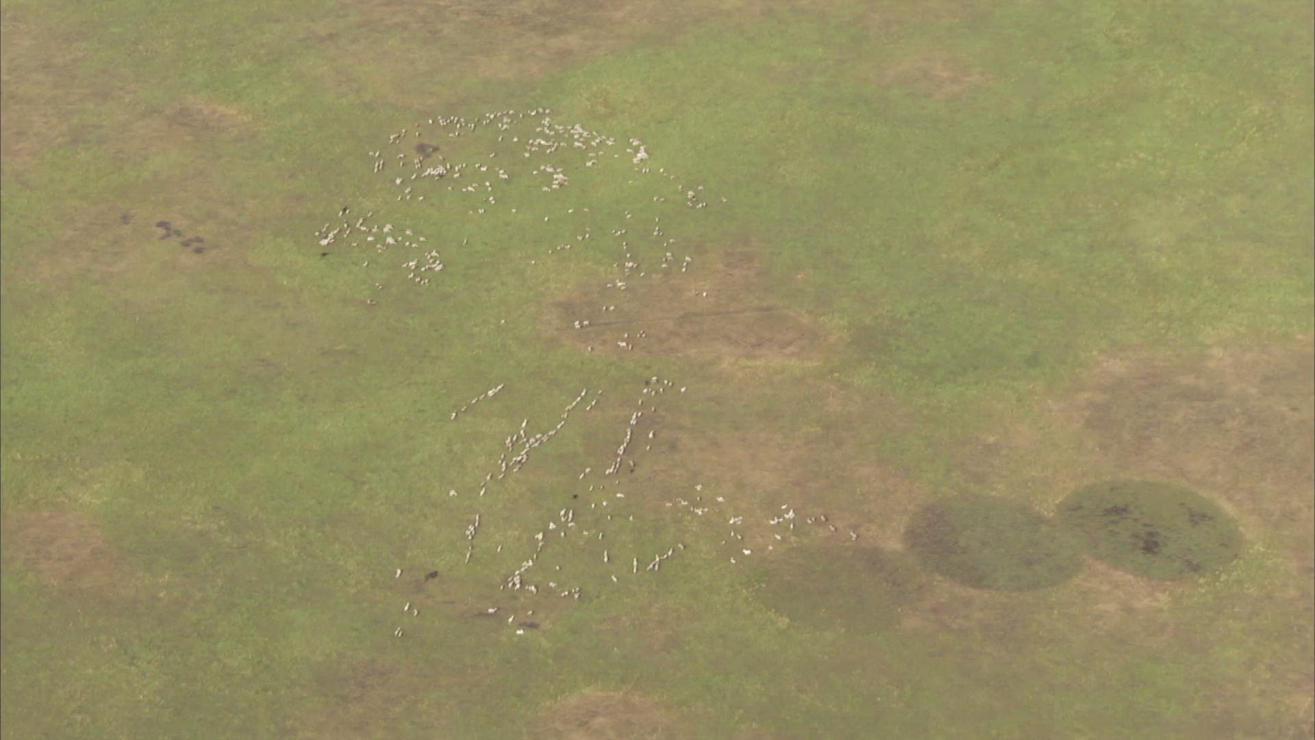 Hot-air balloon aerial over grasslands; Inner Mongolia; Asia