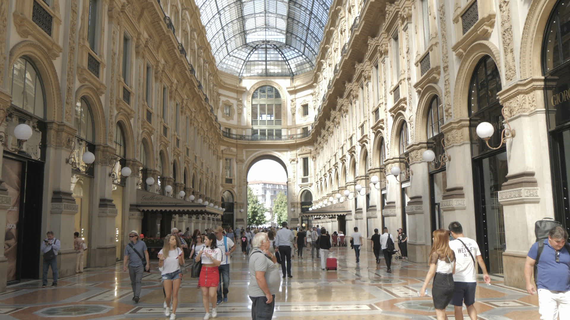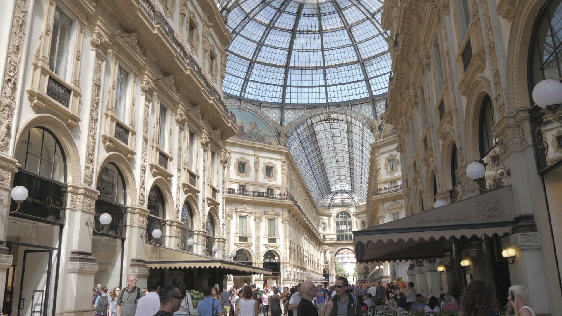 People shopping under glass ceiling in Galleria Vittorio Emanuele II, Milan, Italy, Europe