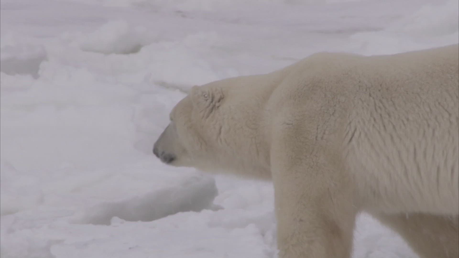 Polar bear walking on ice; Churchill; Manitoba; Canada