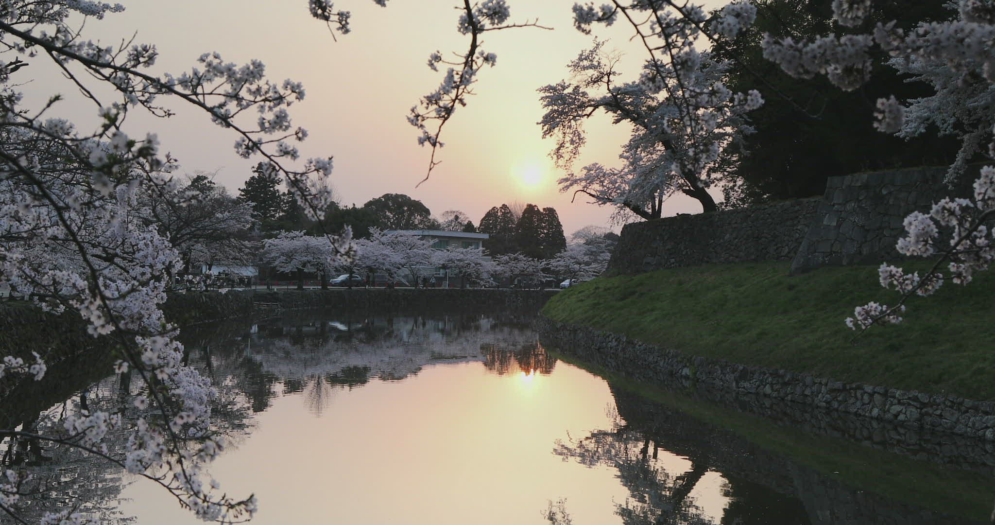 Cherry blossom and bridge over moat of Hikone Castle; Hikone; Kansai; Japan; Asia