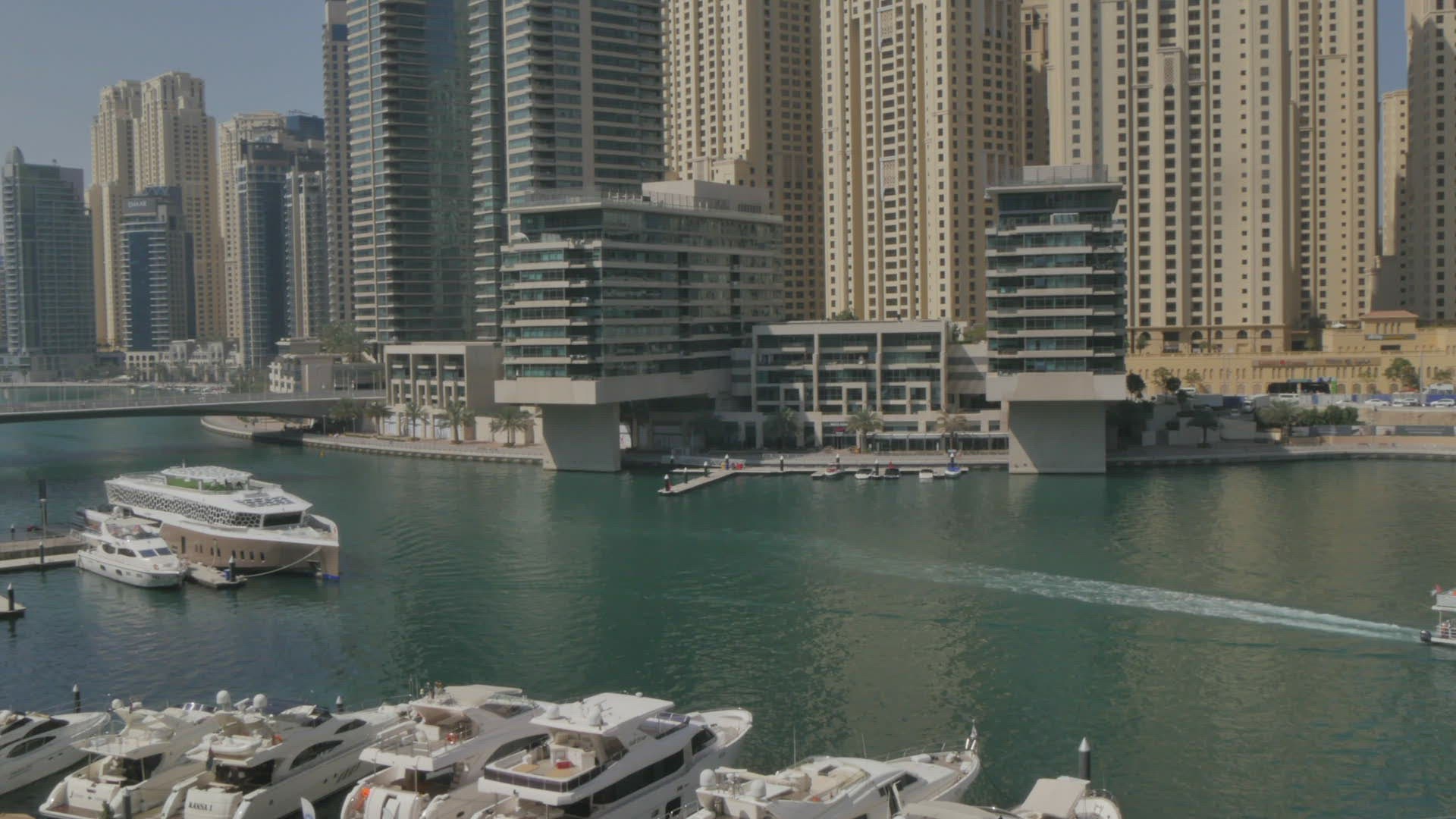 Dubai Metro tram and Sheikh Zayed Road; Dubai Marina; Dubai; United Arab Emirates; Middle East; Asia