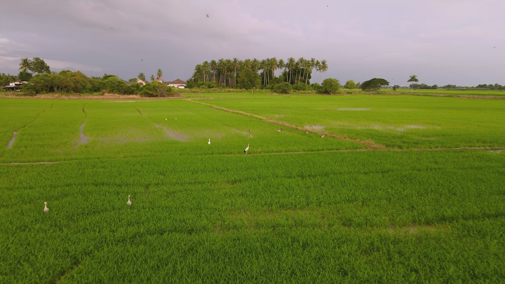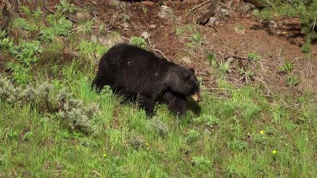 1110102 - Moose with newborn calf in tall green grass as they walk into the brush