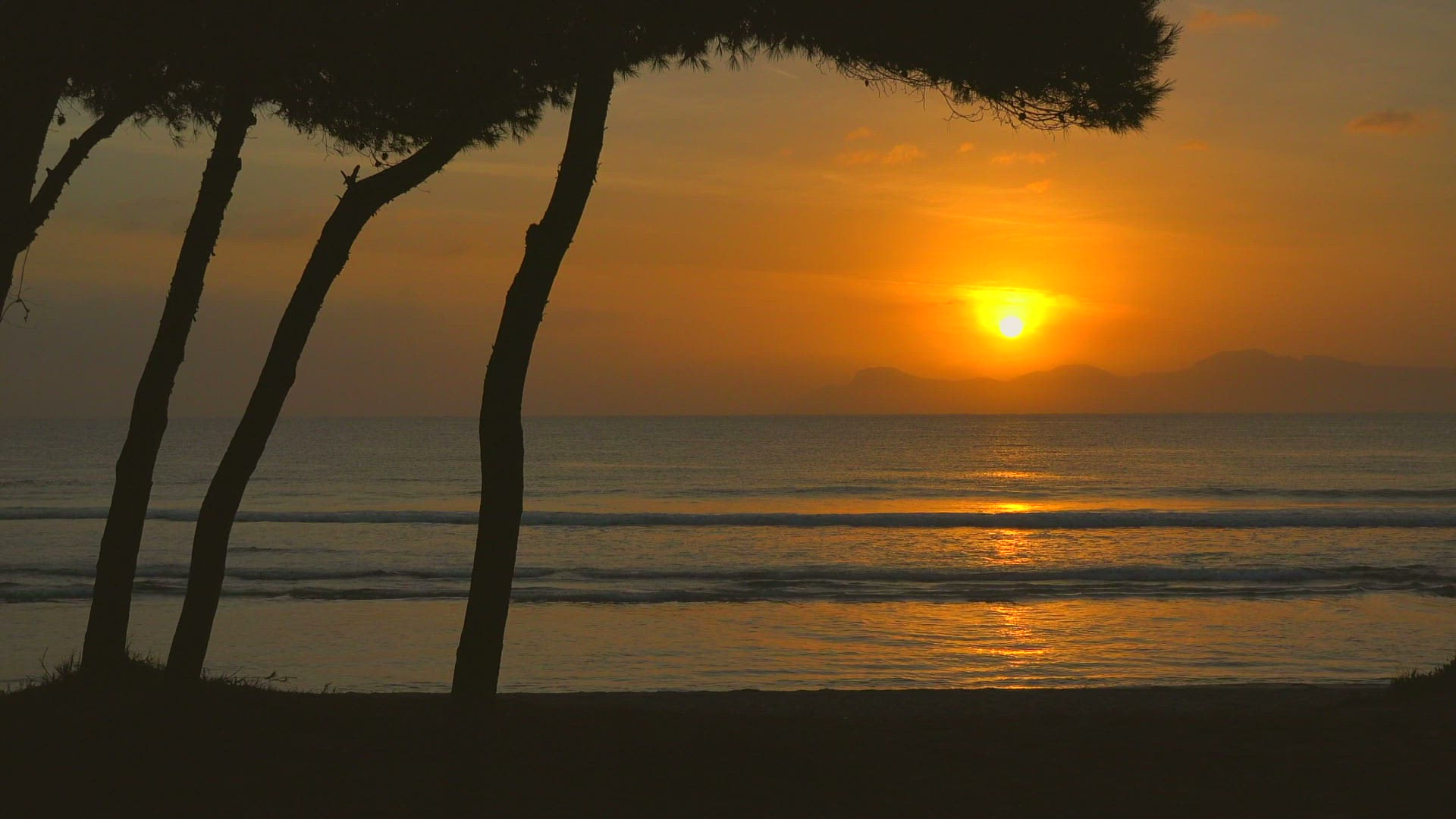Beach of Playa de Muro with pine trees in the morning; Majorca; Balearic Islands; Spain; Mediterranean; Europe