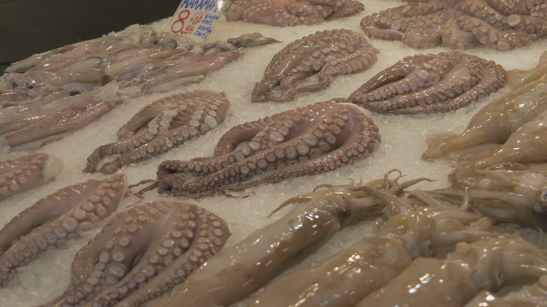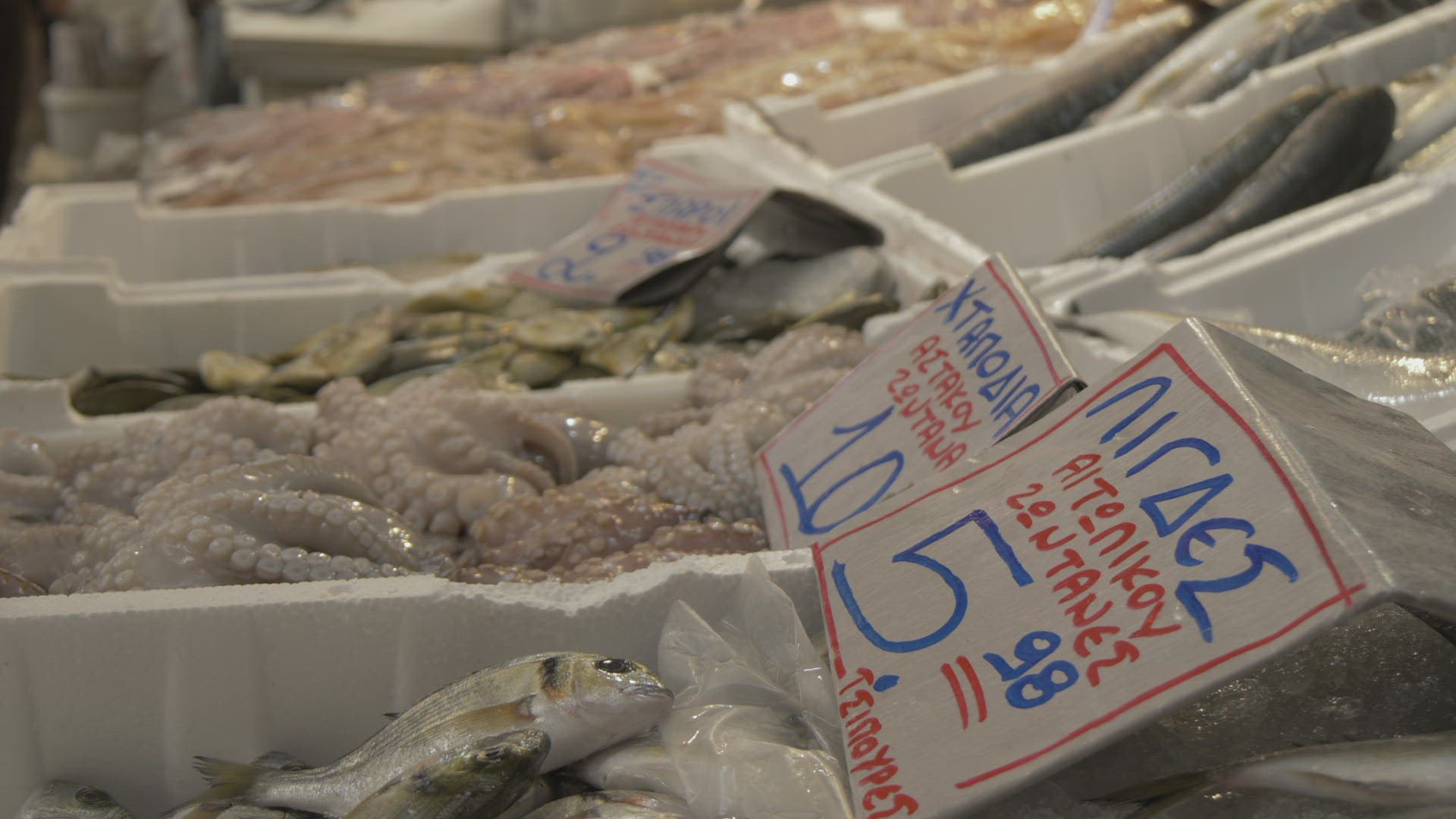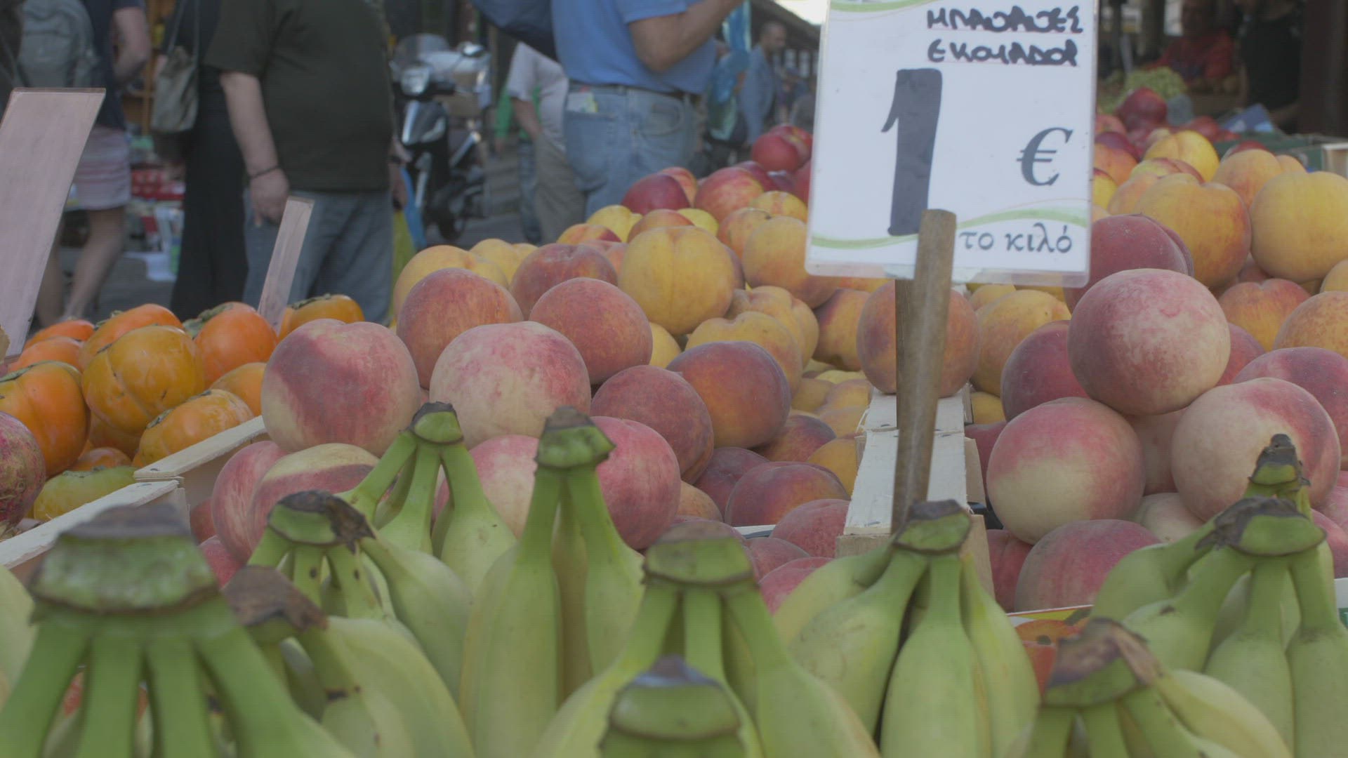 Slider shot of produce stall near Athens Central Meat and Fish Market; Athens; Greece; Europe