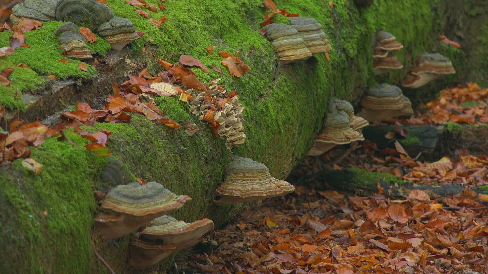 Tree stump in autumn forest; Freudenburg; Rhineland-Palatinate; Germany; Europe