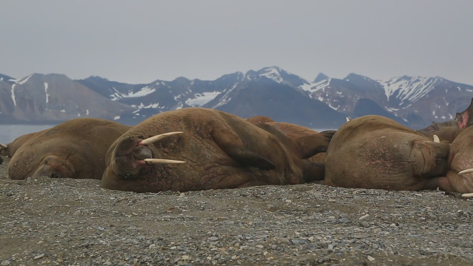 Walrus (Odobenus rosmarus); medium close adult in group; Antarctica