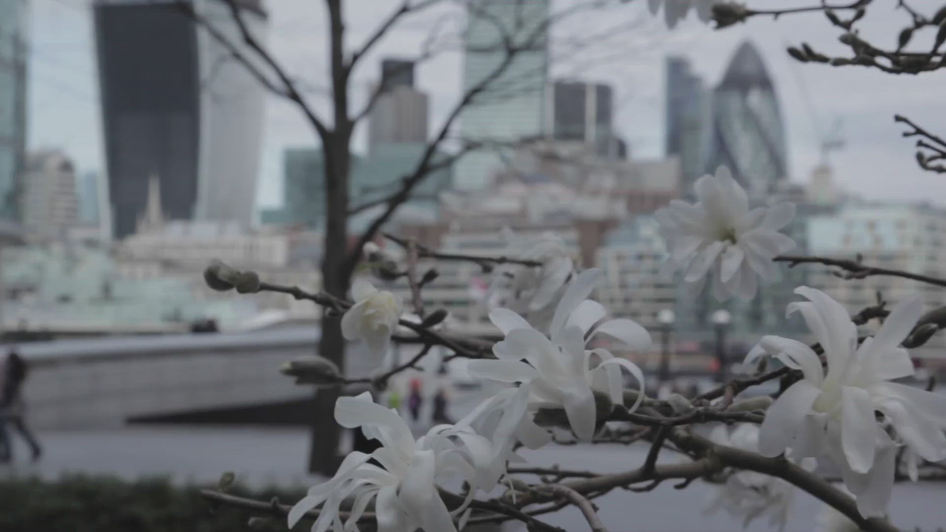 The City Skyline & Spring Flowers; London; England; UK; Europe