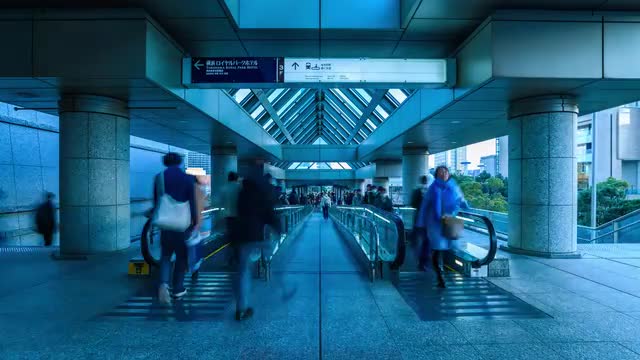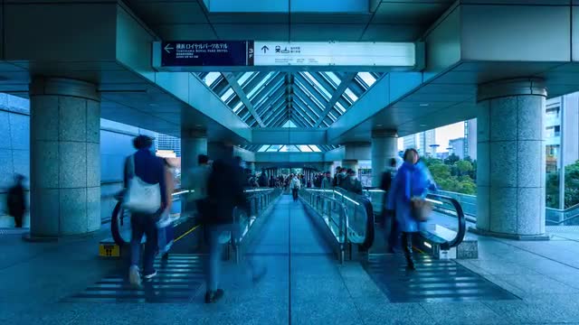 View of commuters shadows inside the commuter station in Boston, Massachusetts, in winter.