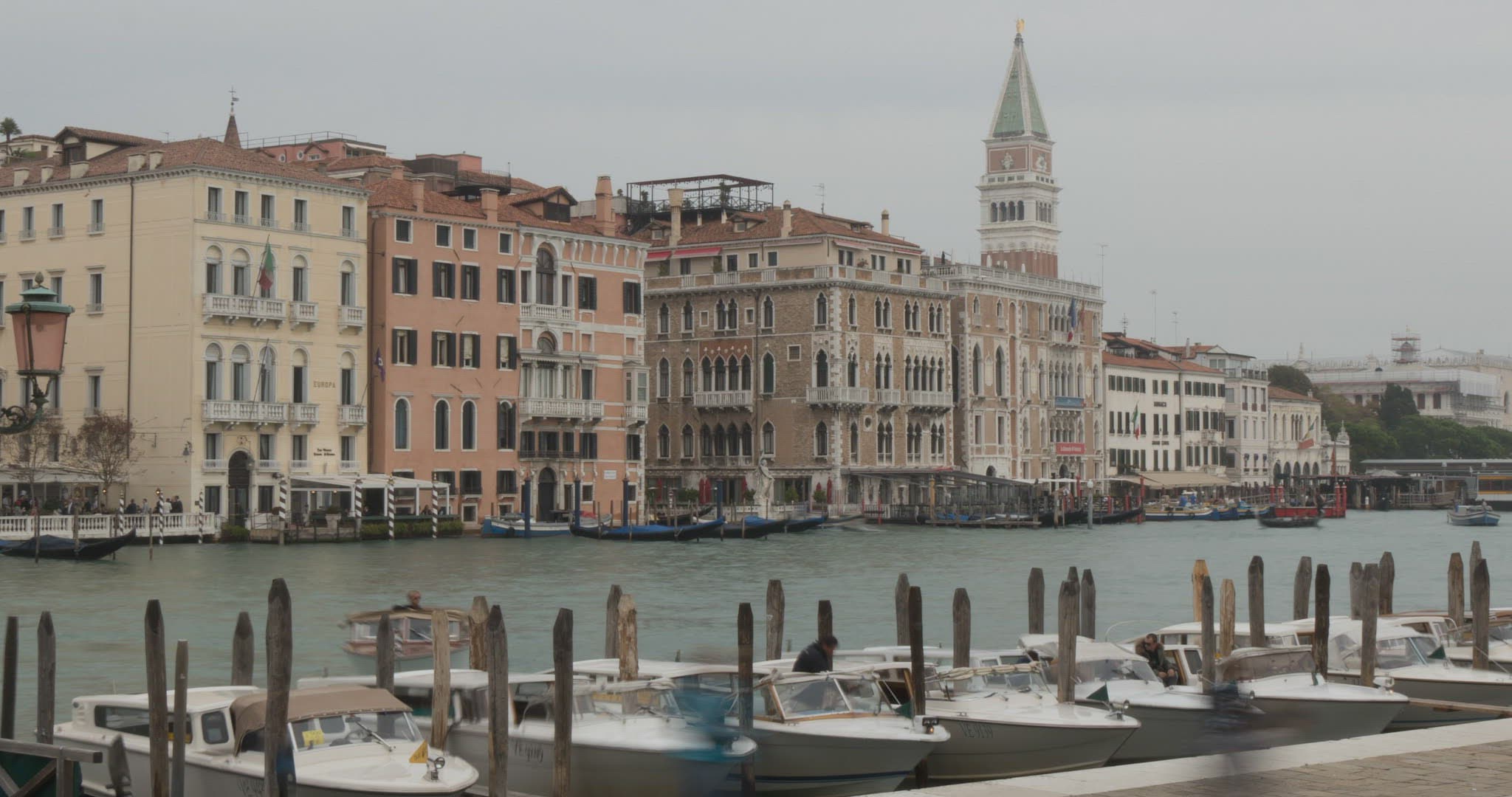 Quayside of Grand Canal and Campanile; Venice; Veneto; Italy; Europe