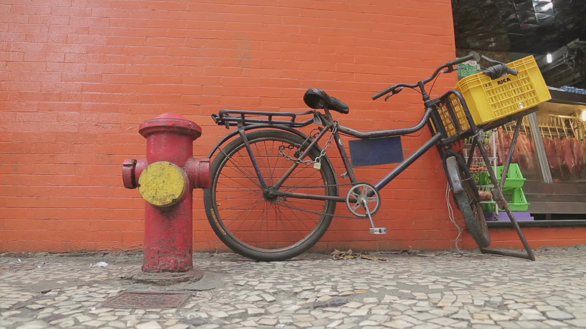Bicycle & Colorful Painted Walls near Copacabana Beach; Rio de Janeiro; Brazil; South America