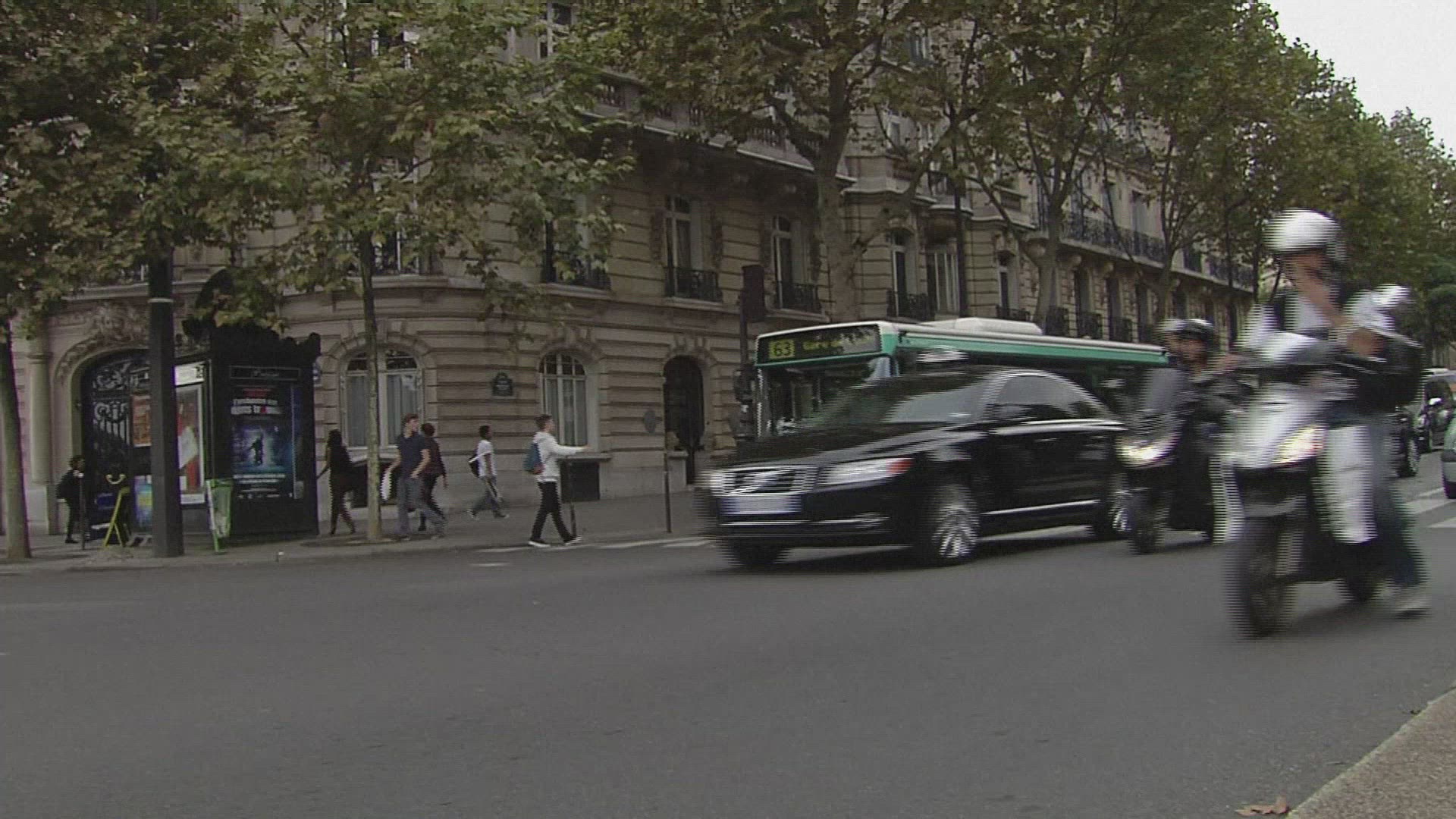 Passing Shot of Pedestrians and Vehicles
