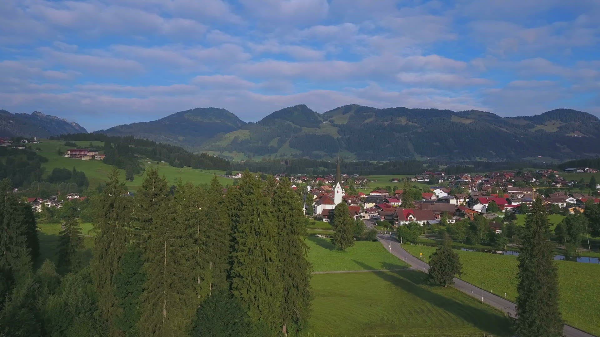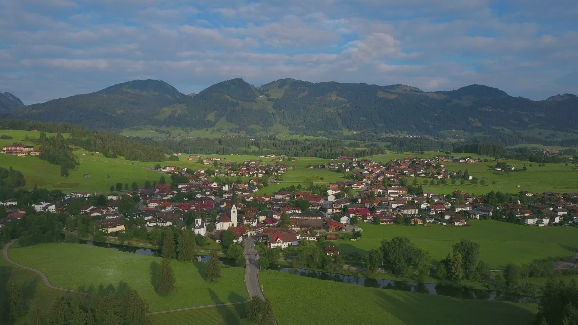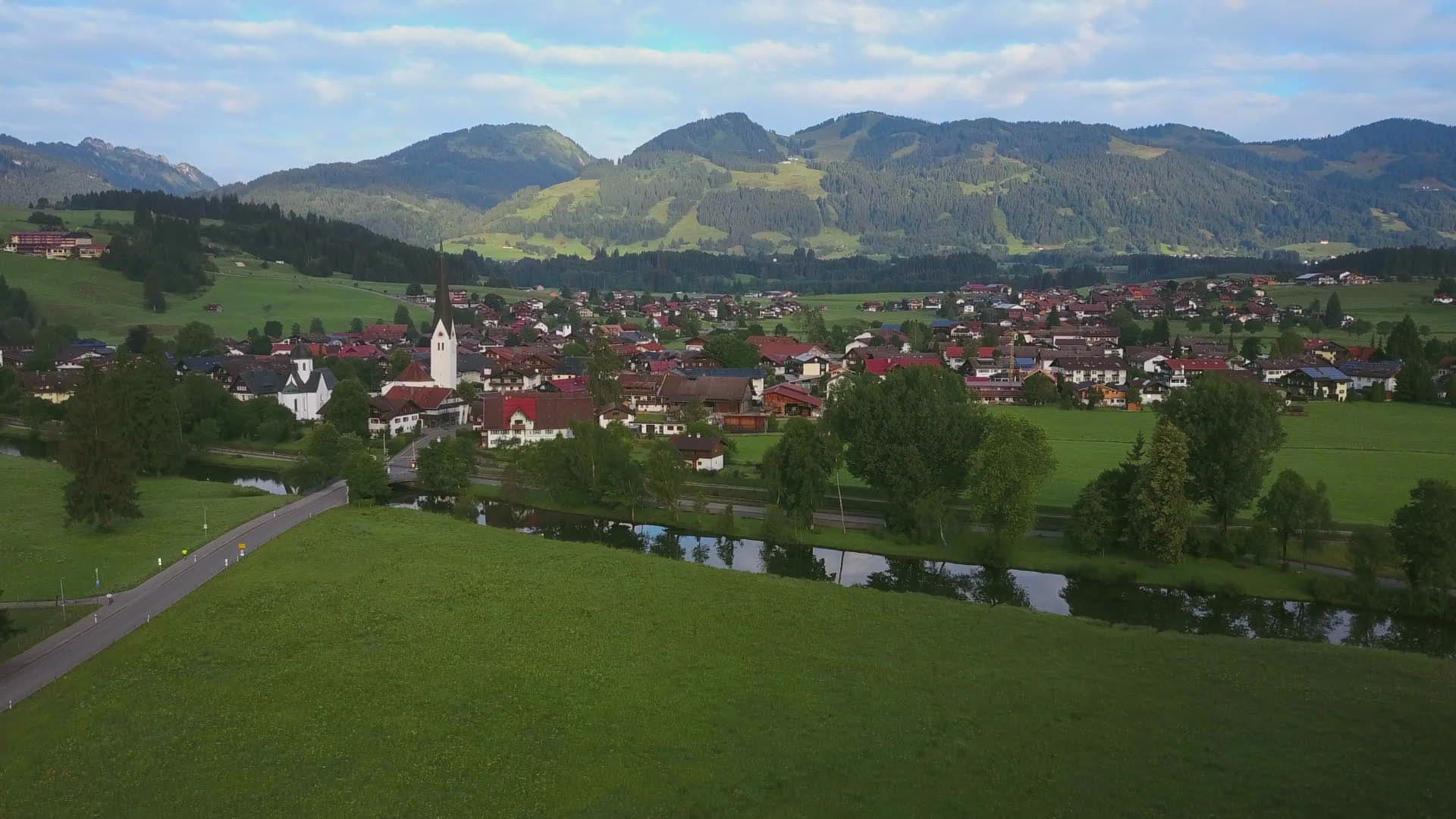 Iller River near Fischen and view to the Allgaeu Alps; Allgu; Swabia; Bavaria; Germany