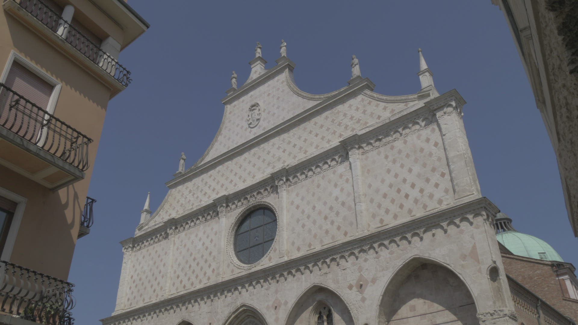 View of facade of Vicenze Cathedral (Duomo) from Piazza del Duomo; Vicenza; Veneto; Italy; Europe