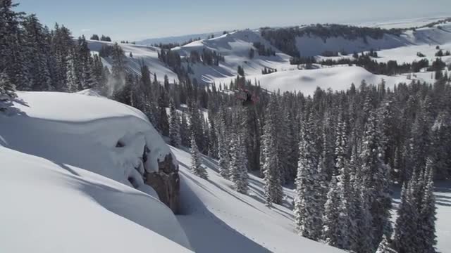 456886 - Skier back flip tipping tree branch mid air slow motion