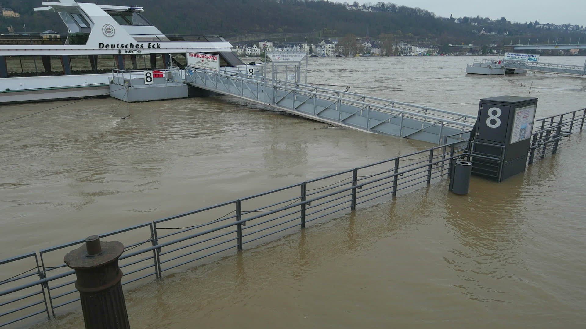 Flood at Konrad-Adenauer-Ufer of river Rhine; January 2018; Koblenz; Rhineland-Palatinate; Germany