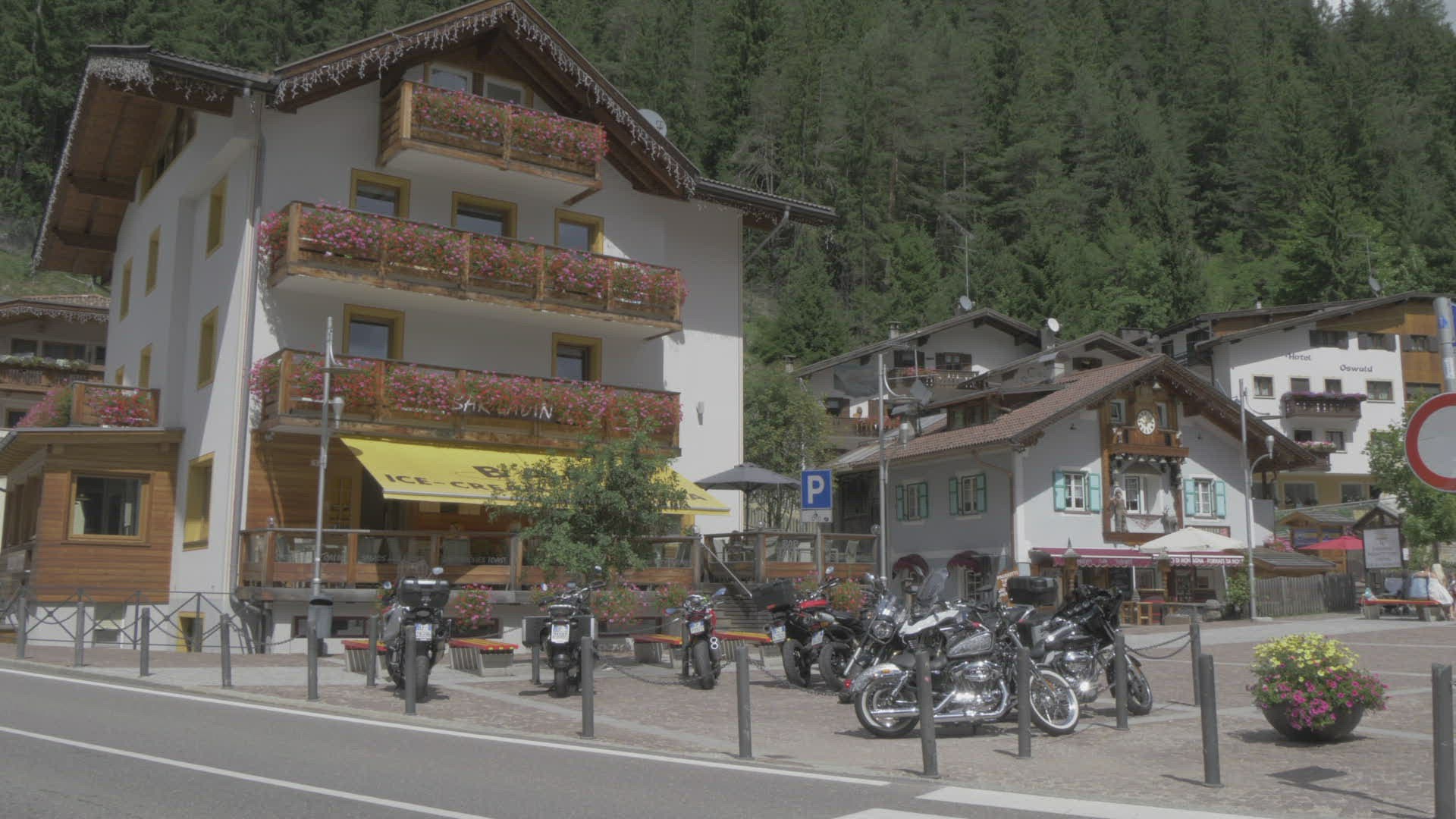 View from above over Canazei; Fassa Valley; Province of Trento; South Tyrol; Italian Dolomites; Italy; Europe