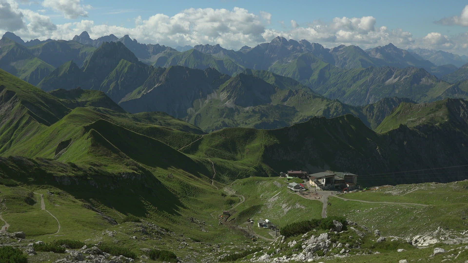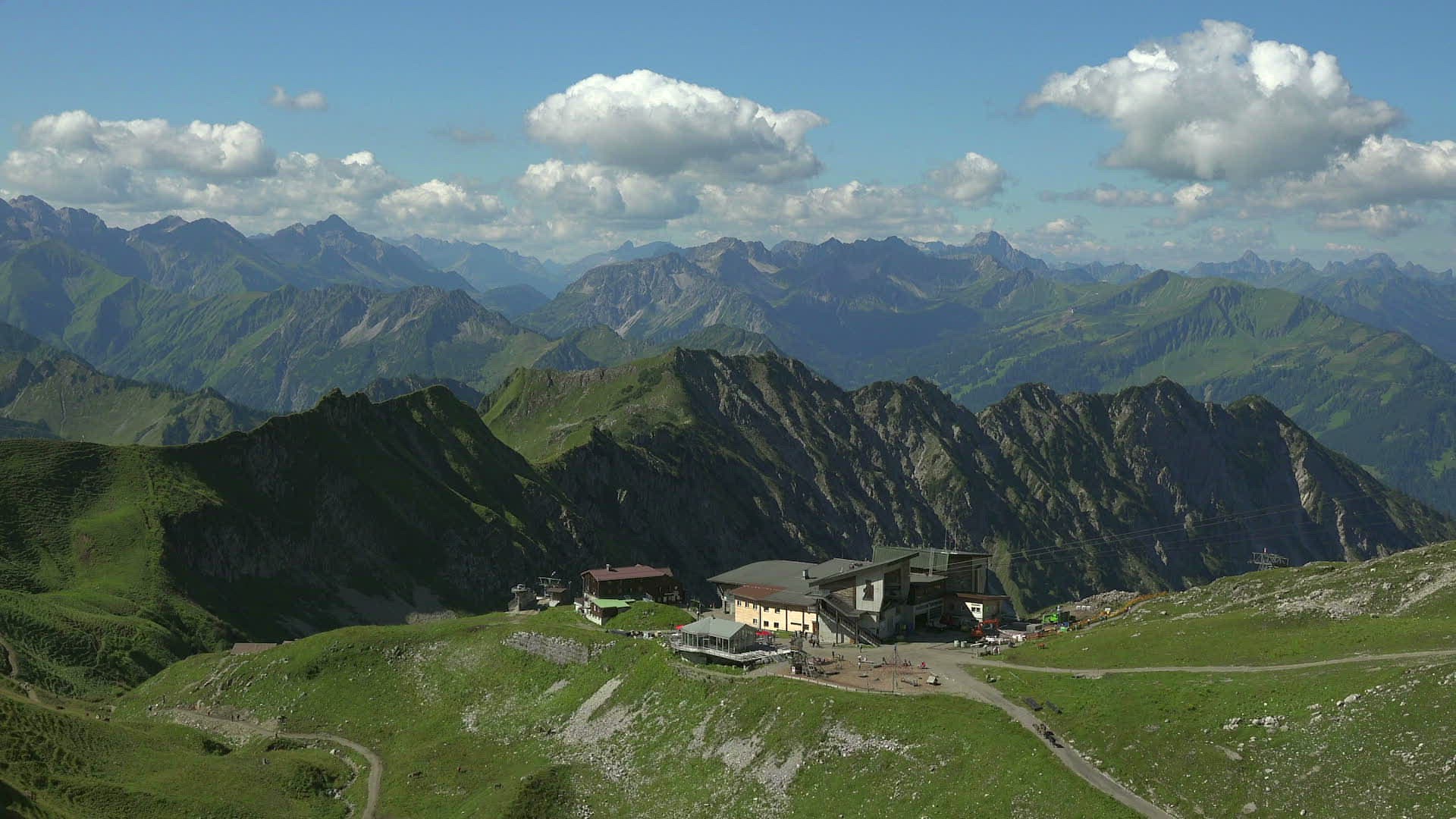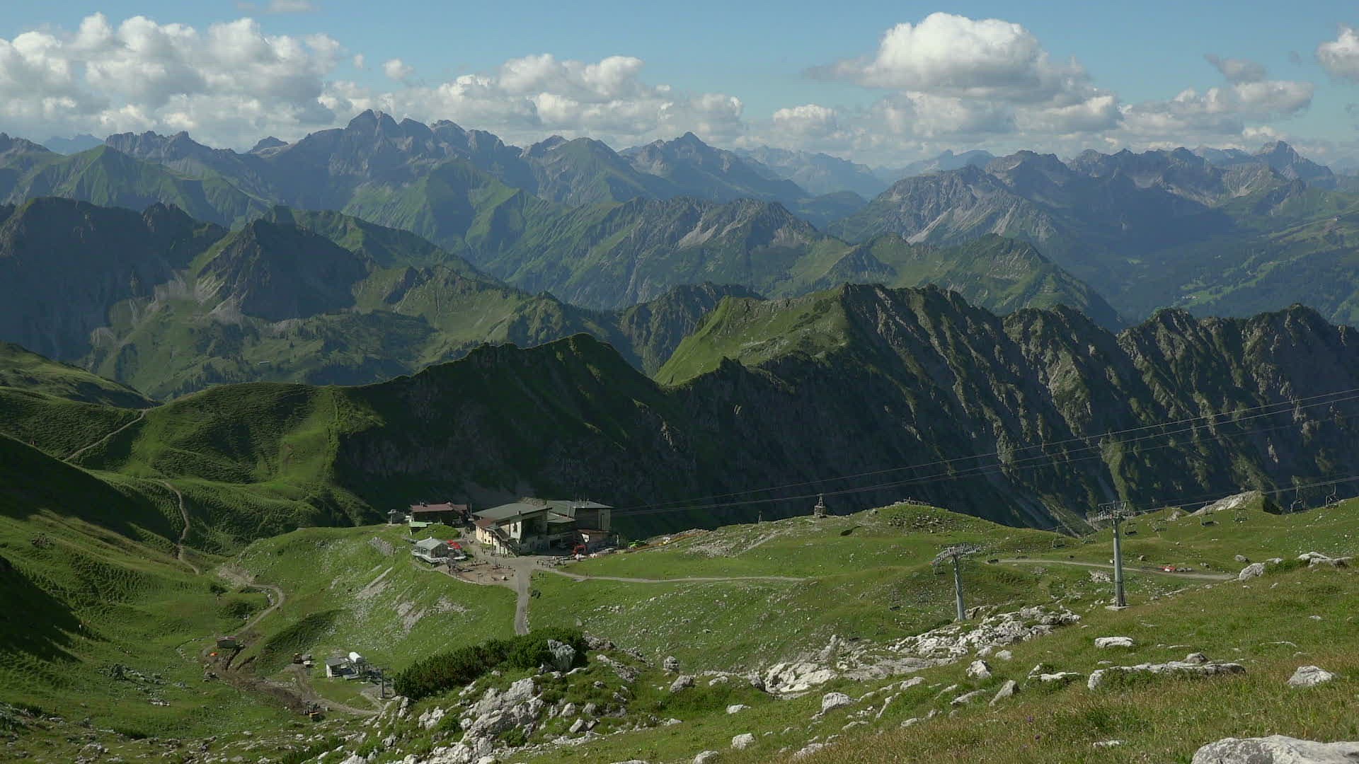 Nebelhorn Cable Car with station Hfatsblick on Nebelhorn Mountain (2224m); Oberstdorf; Allgu; Swabia; Bavaria; Germany