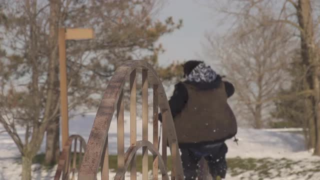 1100110 - Close Up Skier Grinds Down Rail Inside a City
