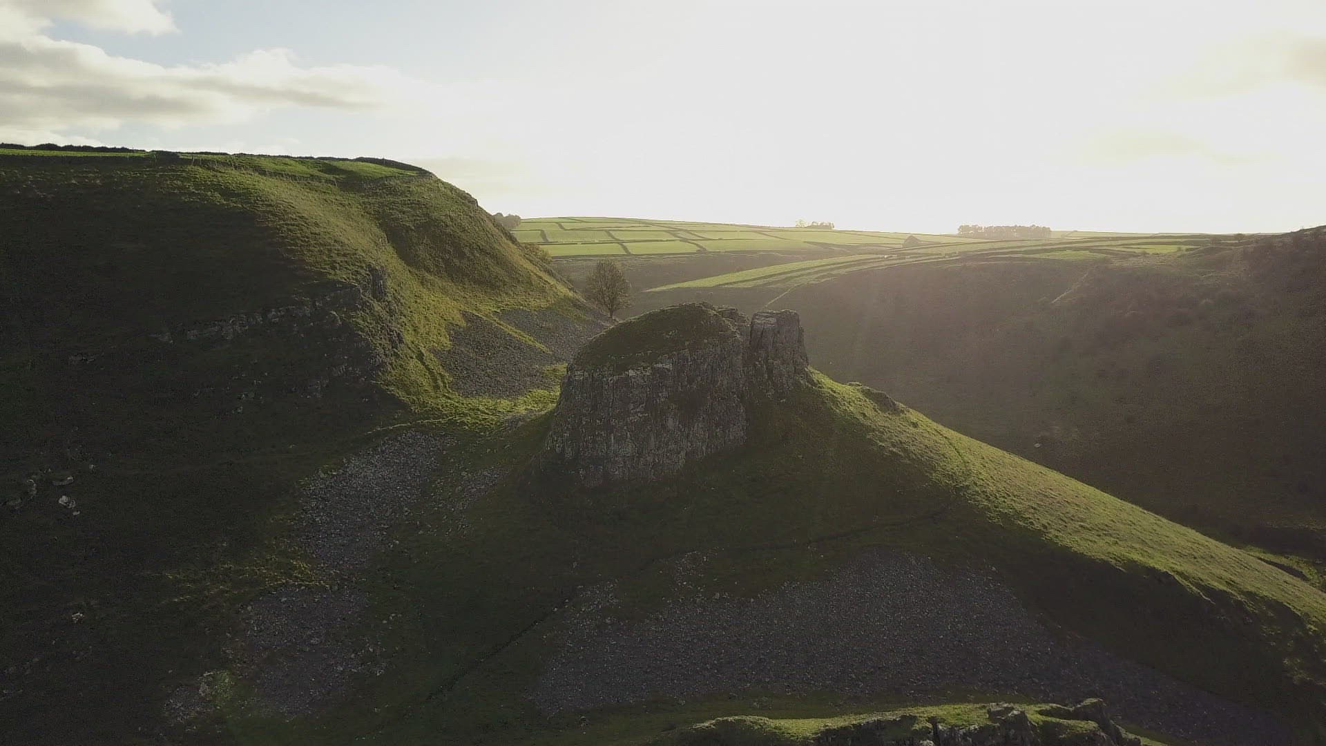 Drone view of rock formation in Peak District National Park, Derbyshire, England, UK, Europe
