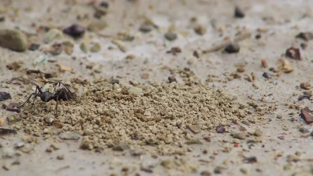 Sphecid wasp cleaning out nest shot on Ash Island Australia