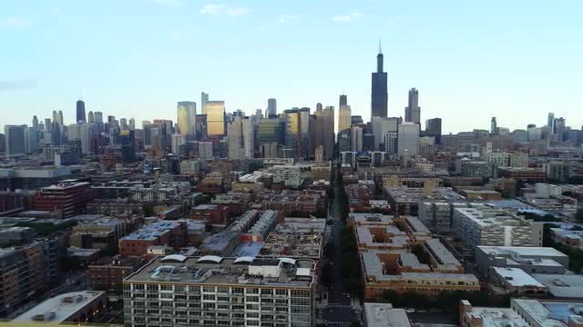 Aerial View of the Downtown Chicago skyline.