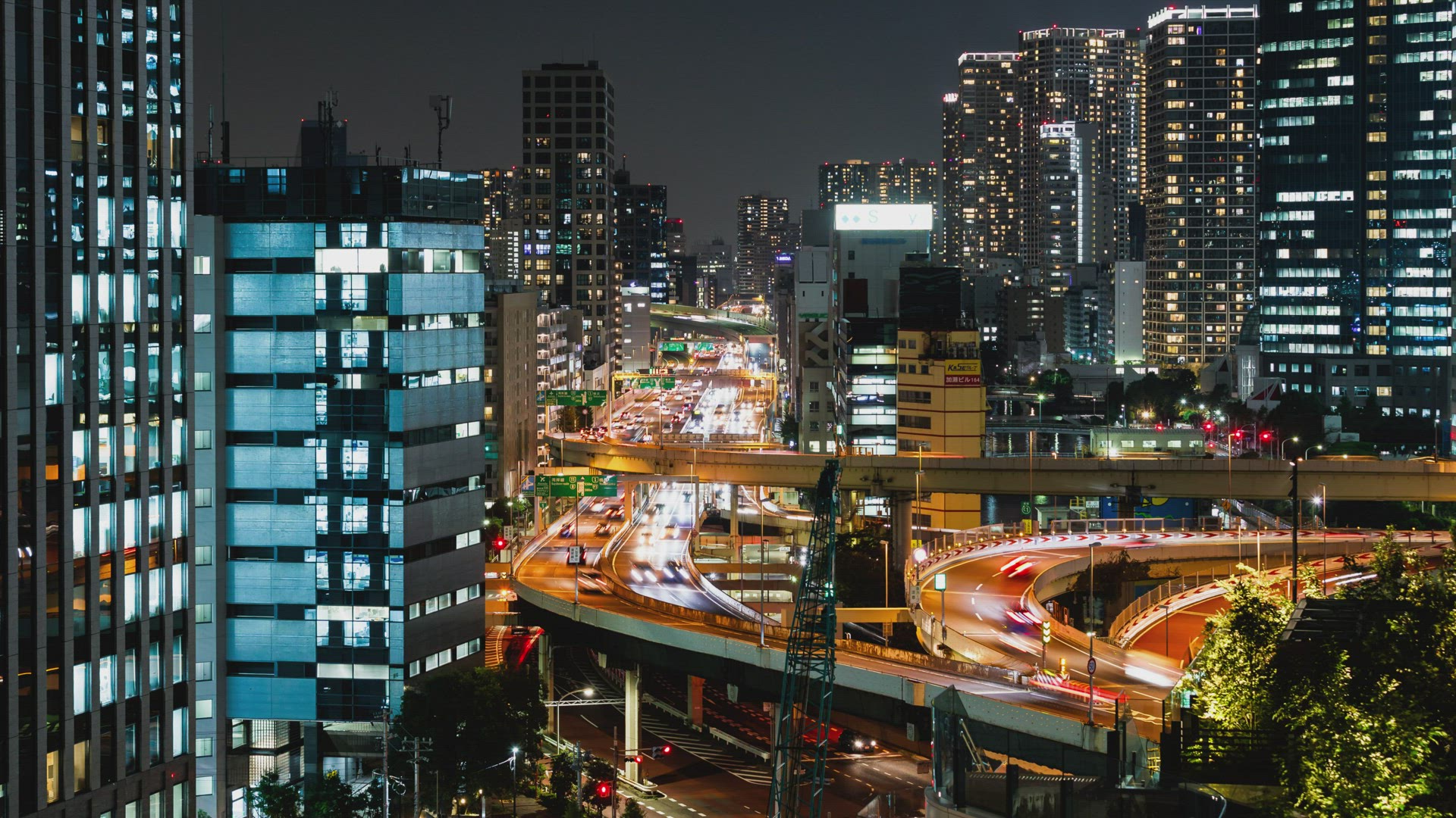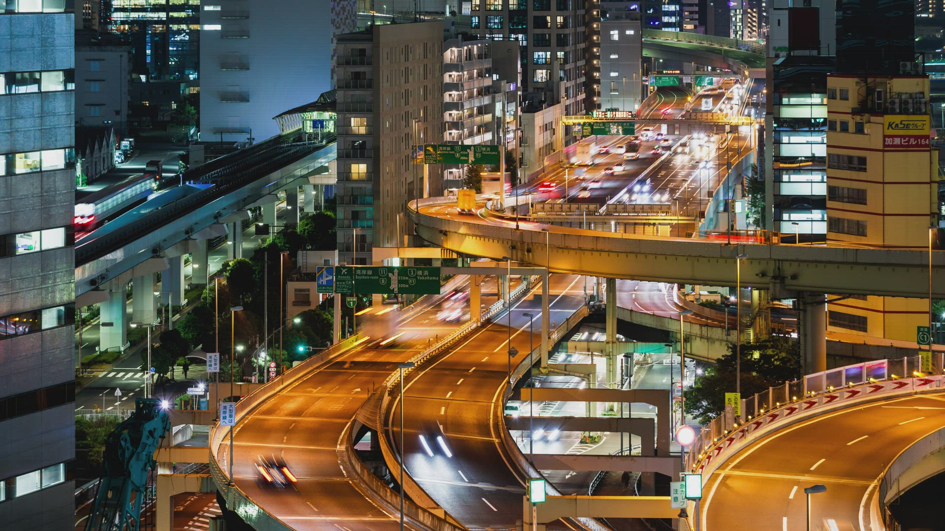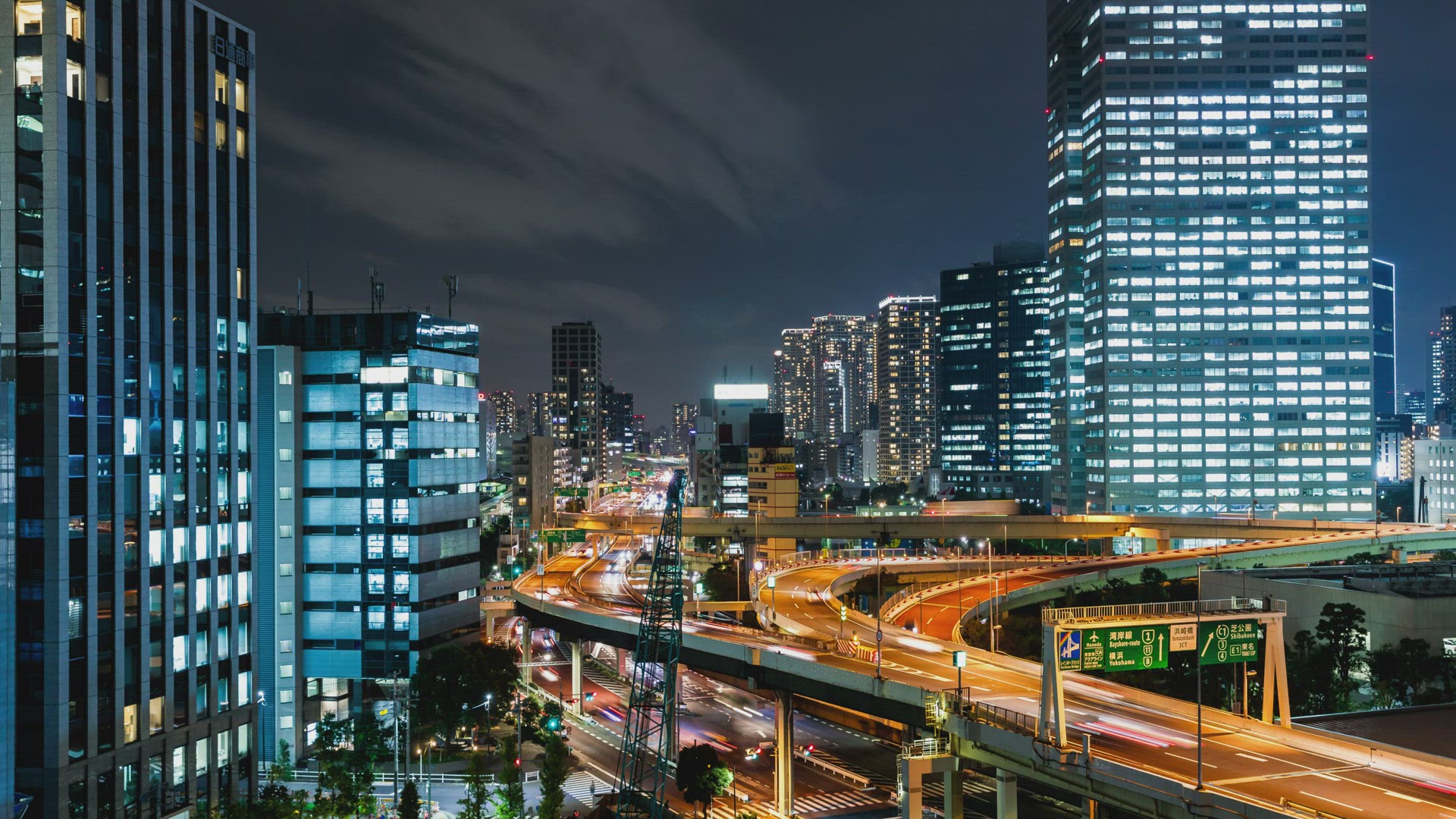 > Timelapse footage of Tokyo cityscape at night, Tokyo, Japan