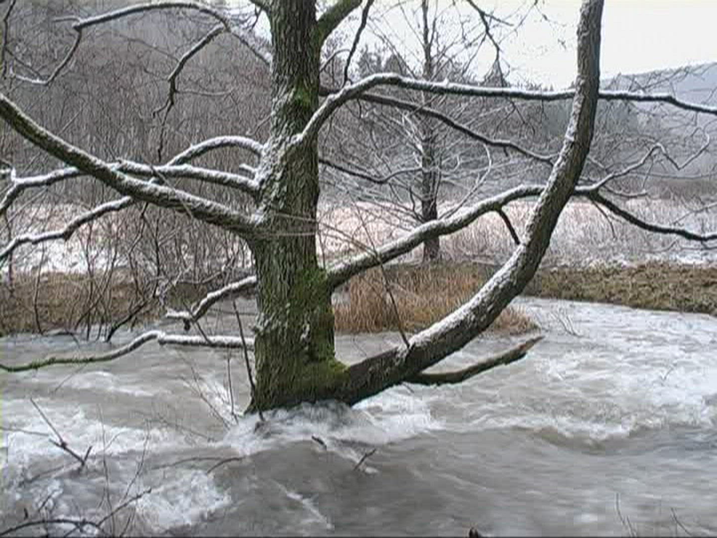> Flooded in snow covered landscape, Hurwenen, Gelderland, Netherlands