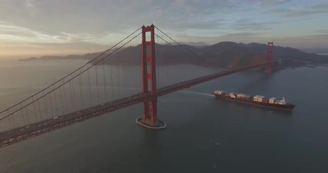 Wide shot of Golden Gate Bridge at sunrise. 8K R3Ds available upon request.