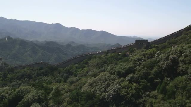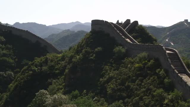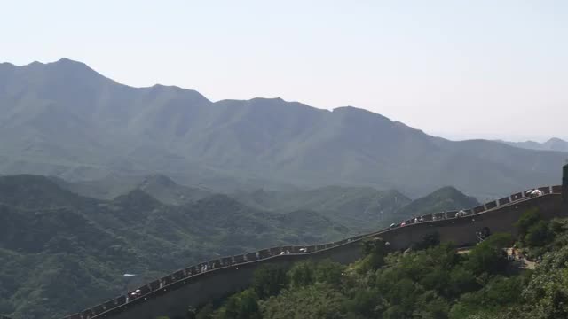 57098 - Panning the Great Wall of China at Badaling near Bejing, China.
