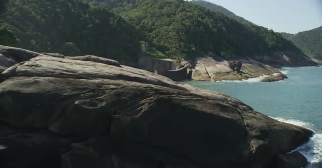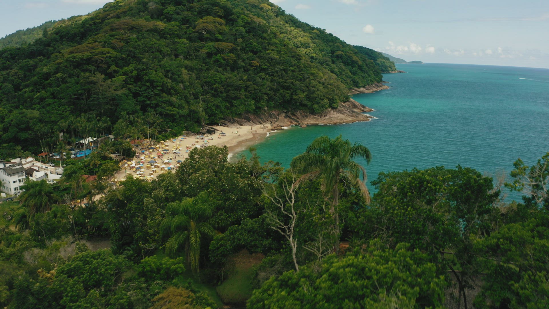 holiday beach paradise ubatuba brazil cliffs bush travel aerial ocean summer 4k
