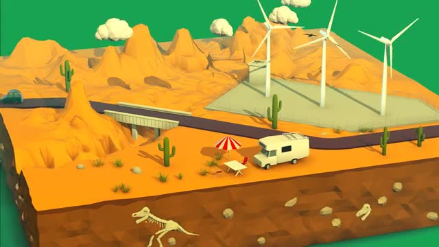 > Landscape with road and wind turbines, Kings Highway, Jordan