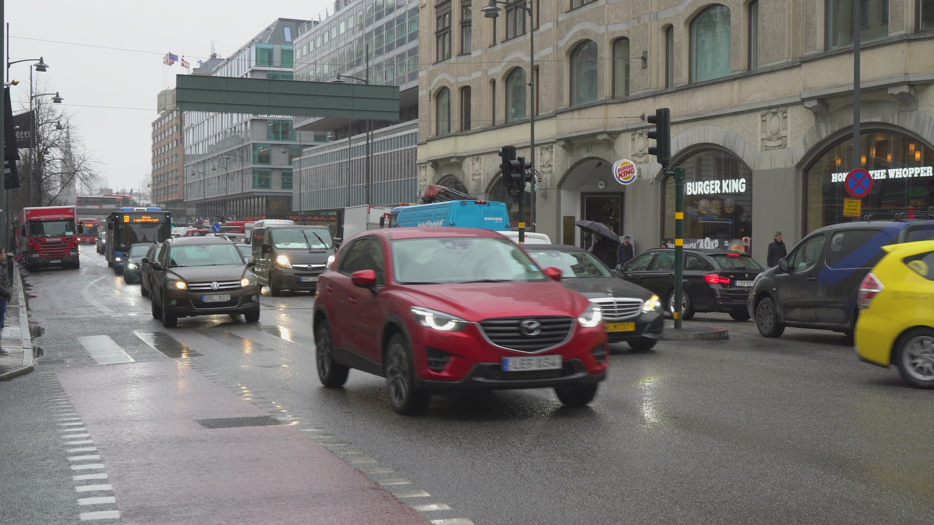 > pedestrian walking on pedestrian crossing on flooded street