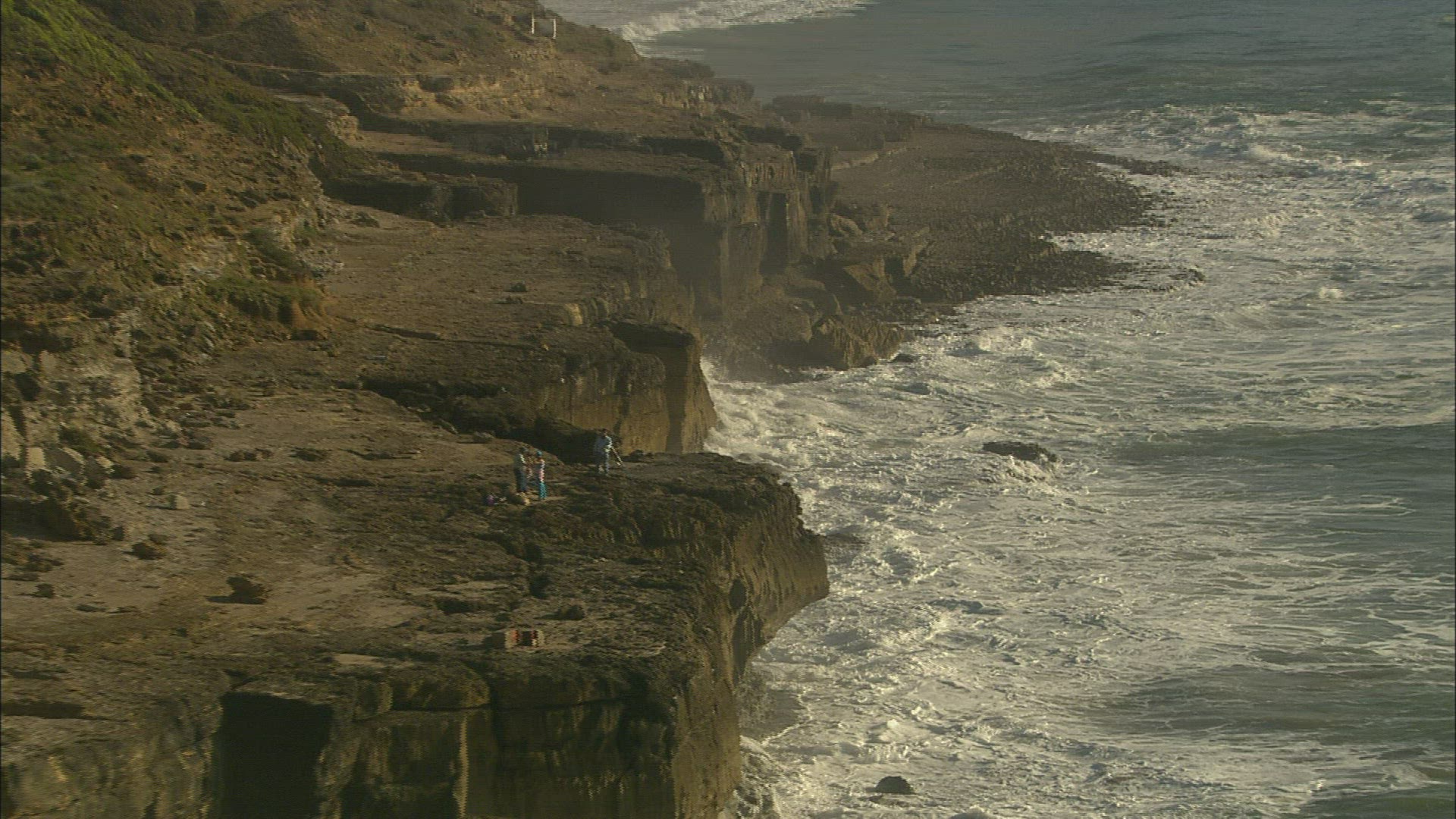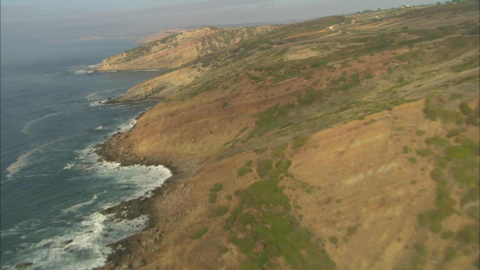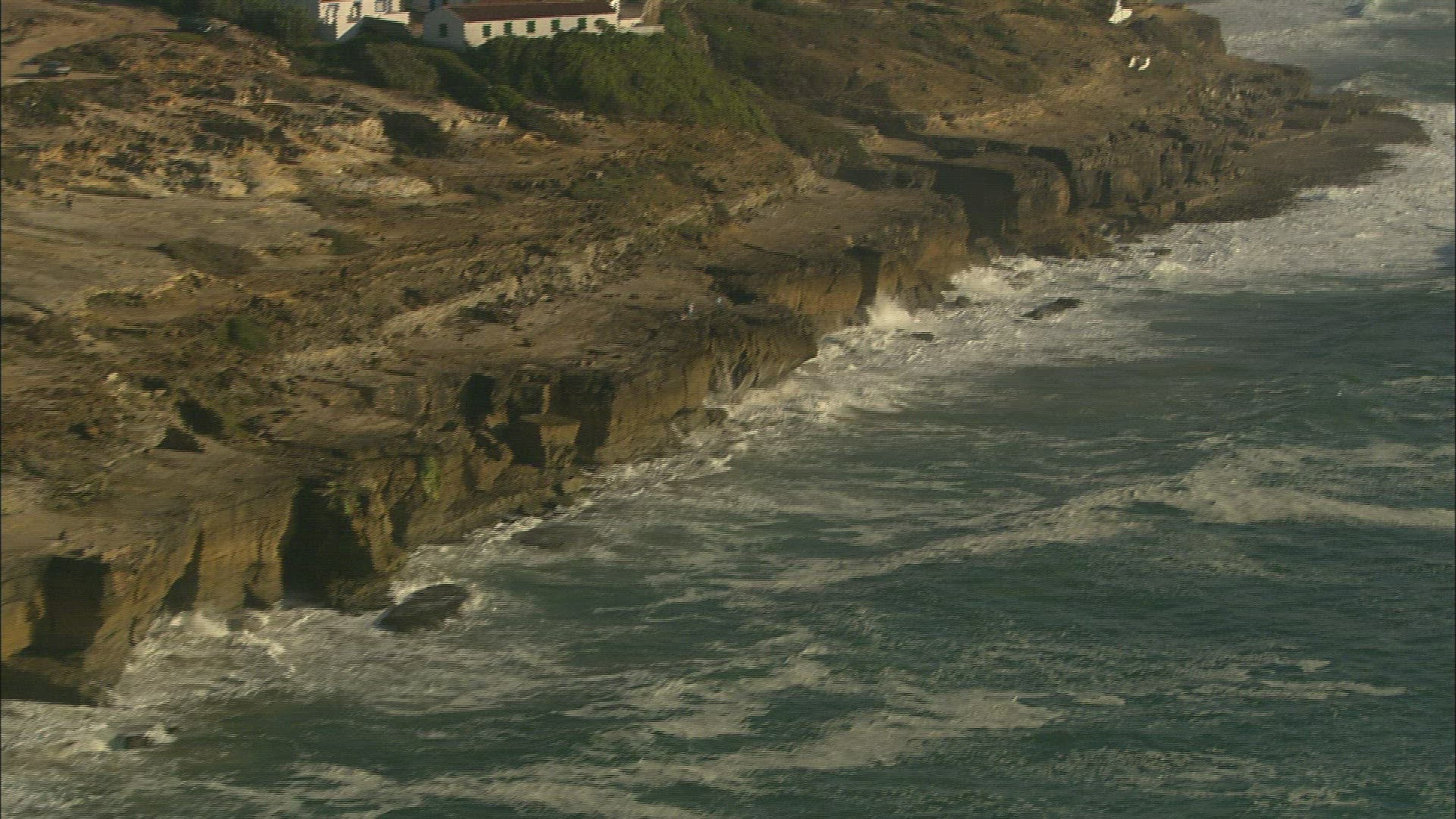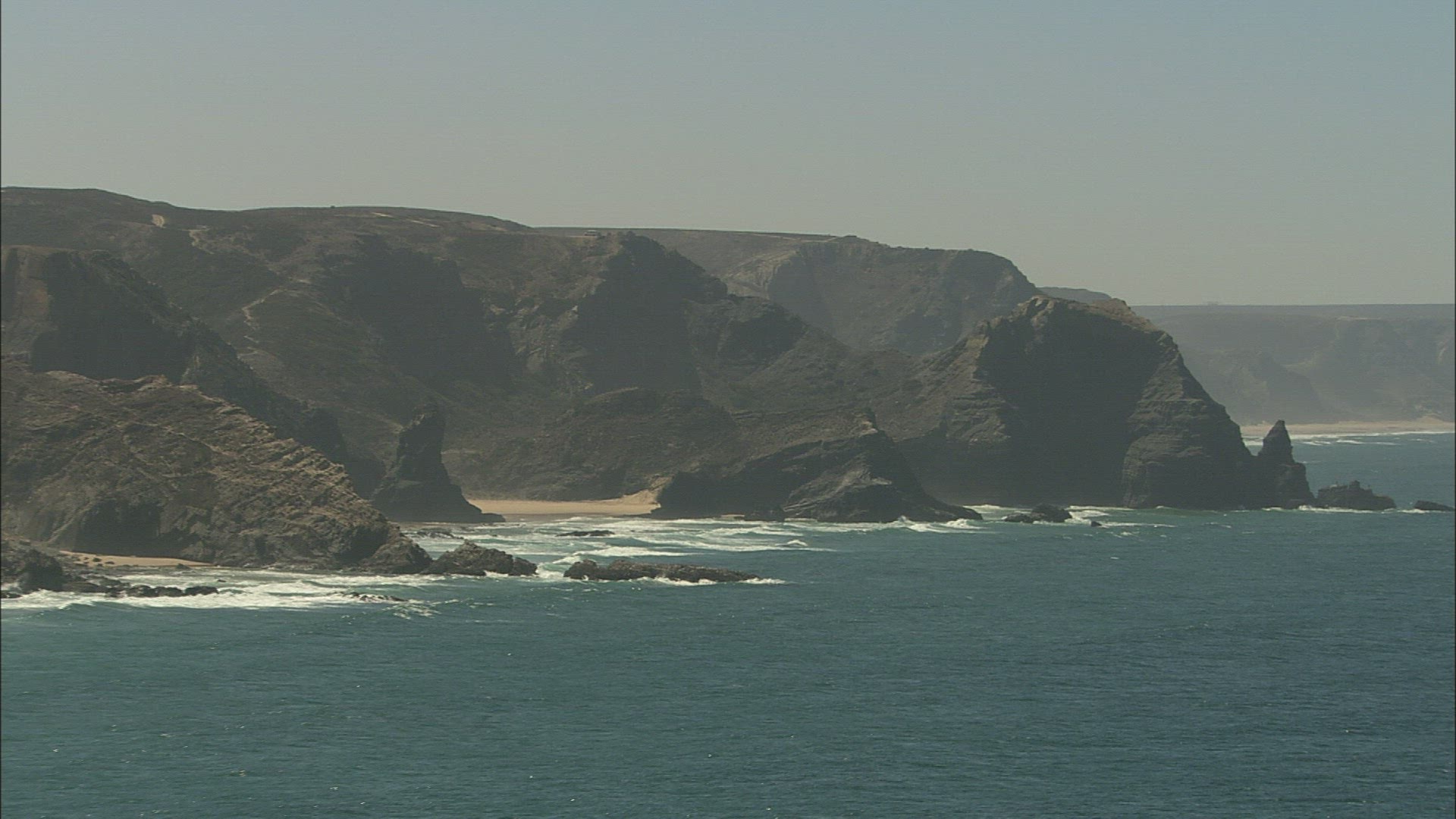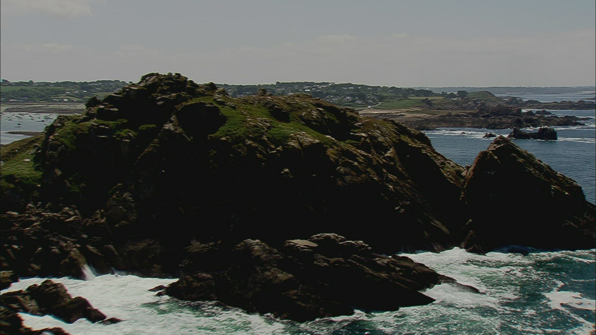 > Aerial truck shot over the coastal waters of Puerto Saavedra
