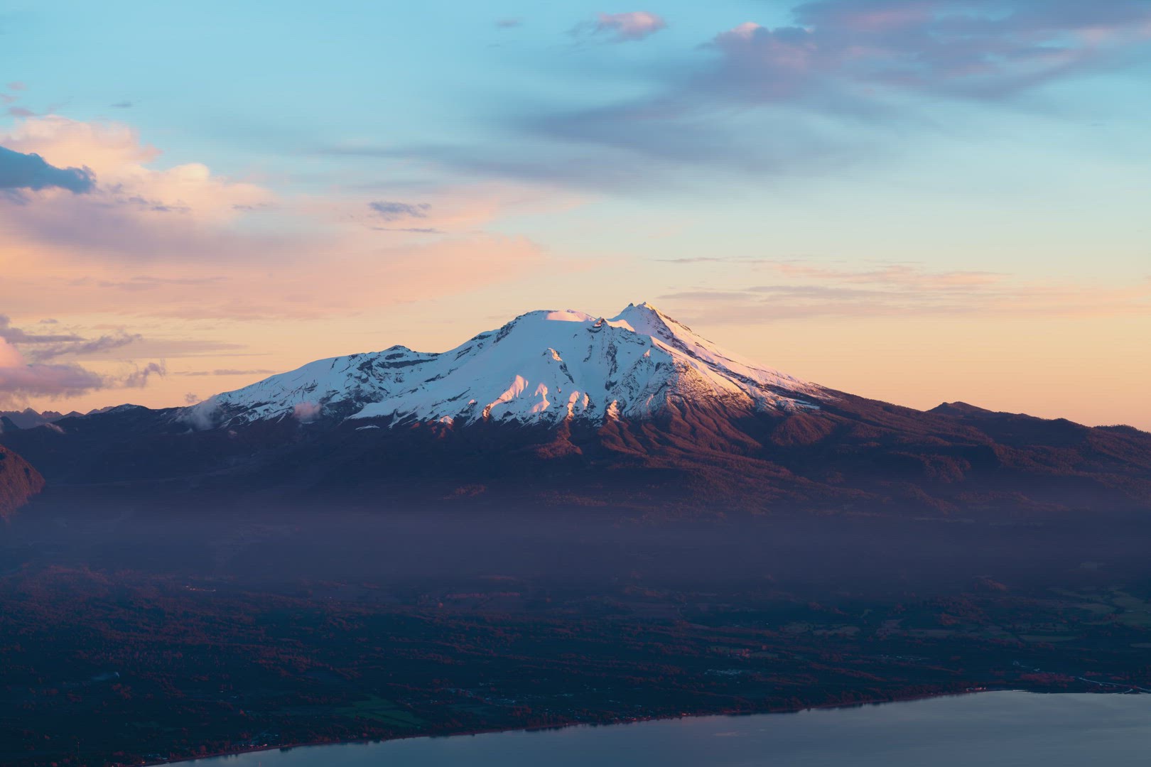 > Time-lapse colors of the sun setting over the Osorno Volcano