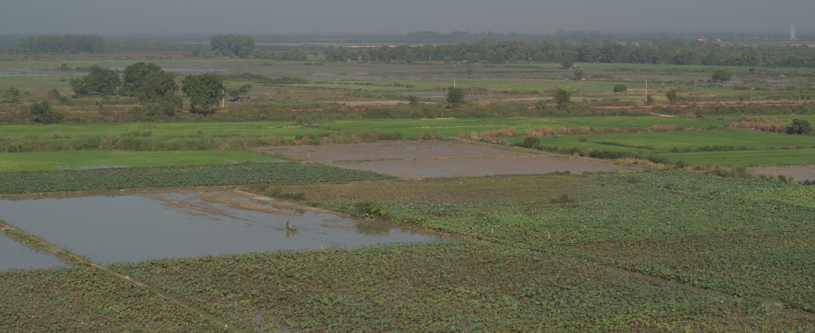 Aerial_Lifestyle_Rural_Man working tractor in lilly farm_Long Approach