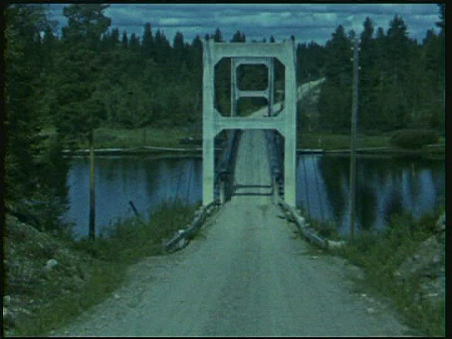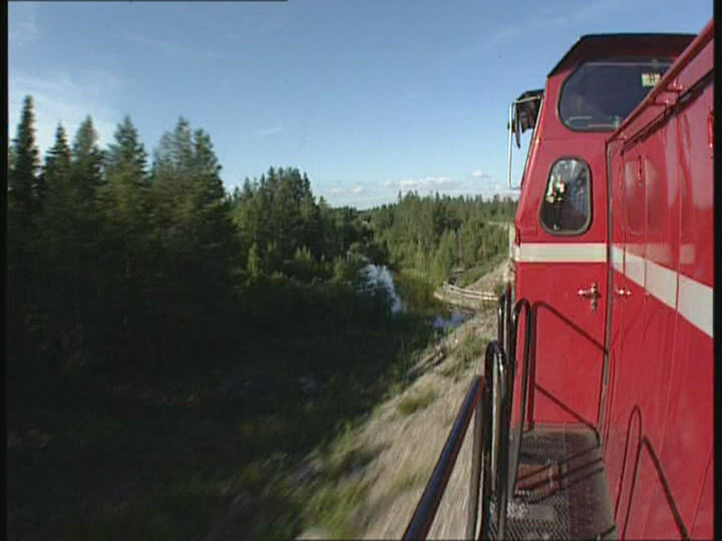 > pov - drone flying over small river in swedish forest