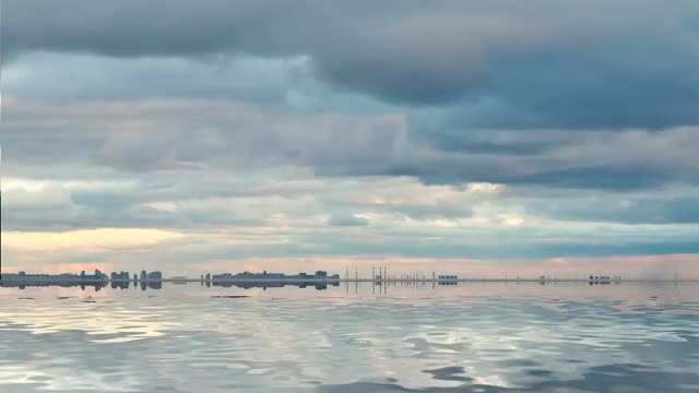 MS PAN Sea at sunset with buildings in foreground / Malaga, Spain
