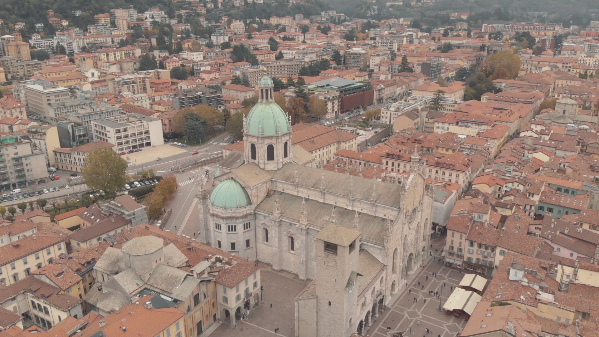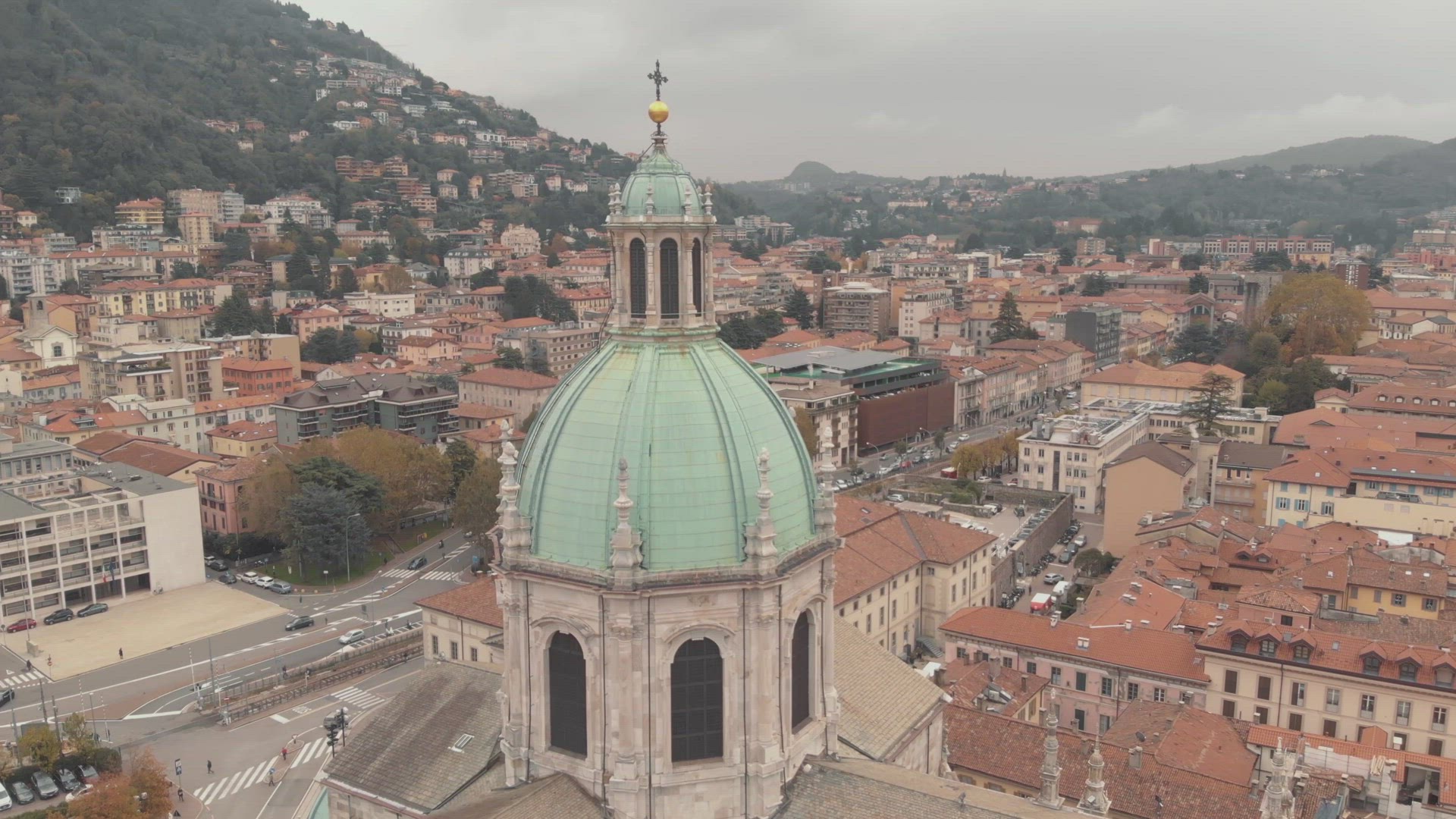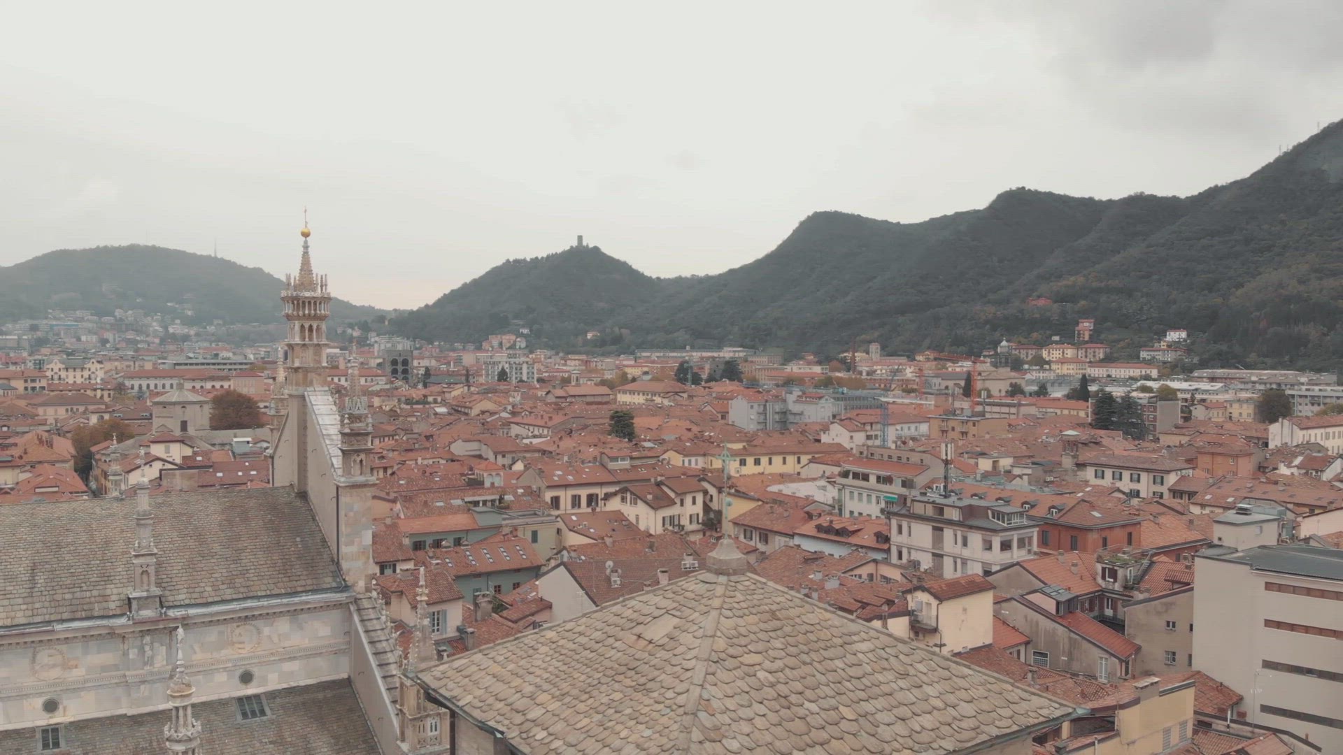 4K Drone Footage of Lake Comoi n Northern Italy’s Lombardy region, an upscale resort area known for its dramatic scenery, set against the foothills of the Alps.