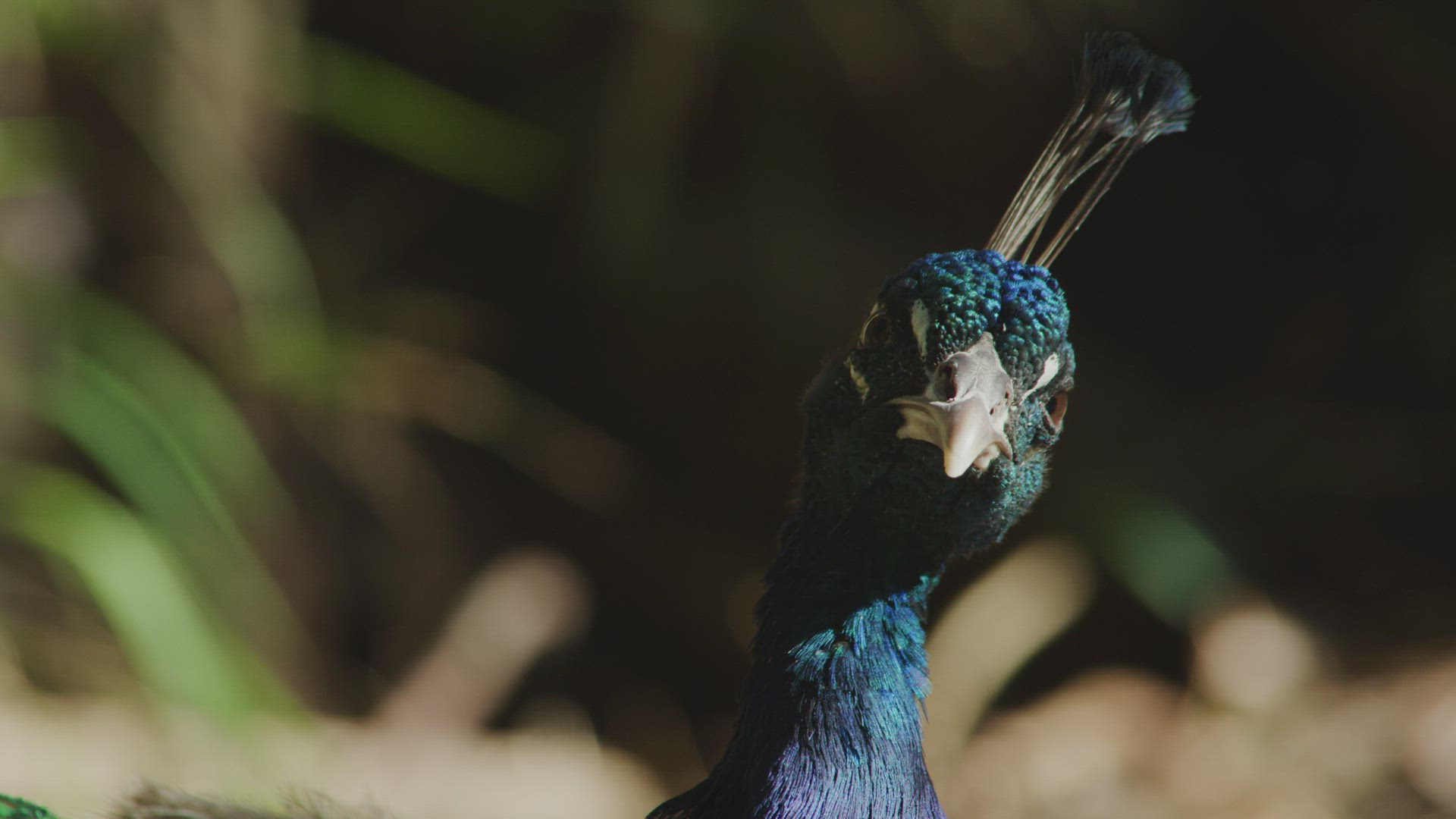 Peacock looking at camera