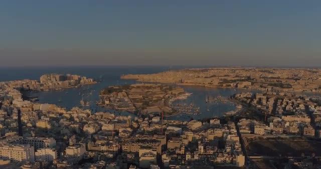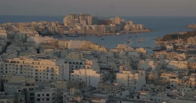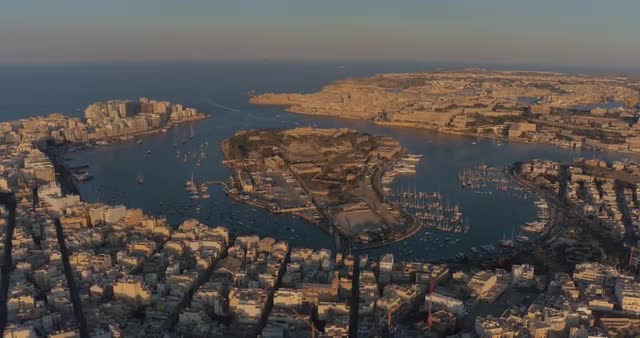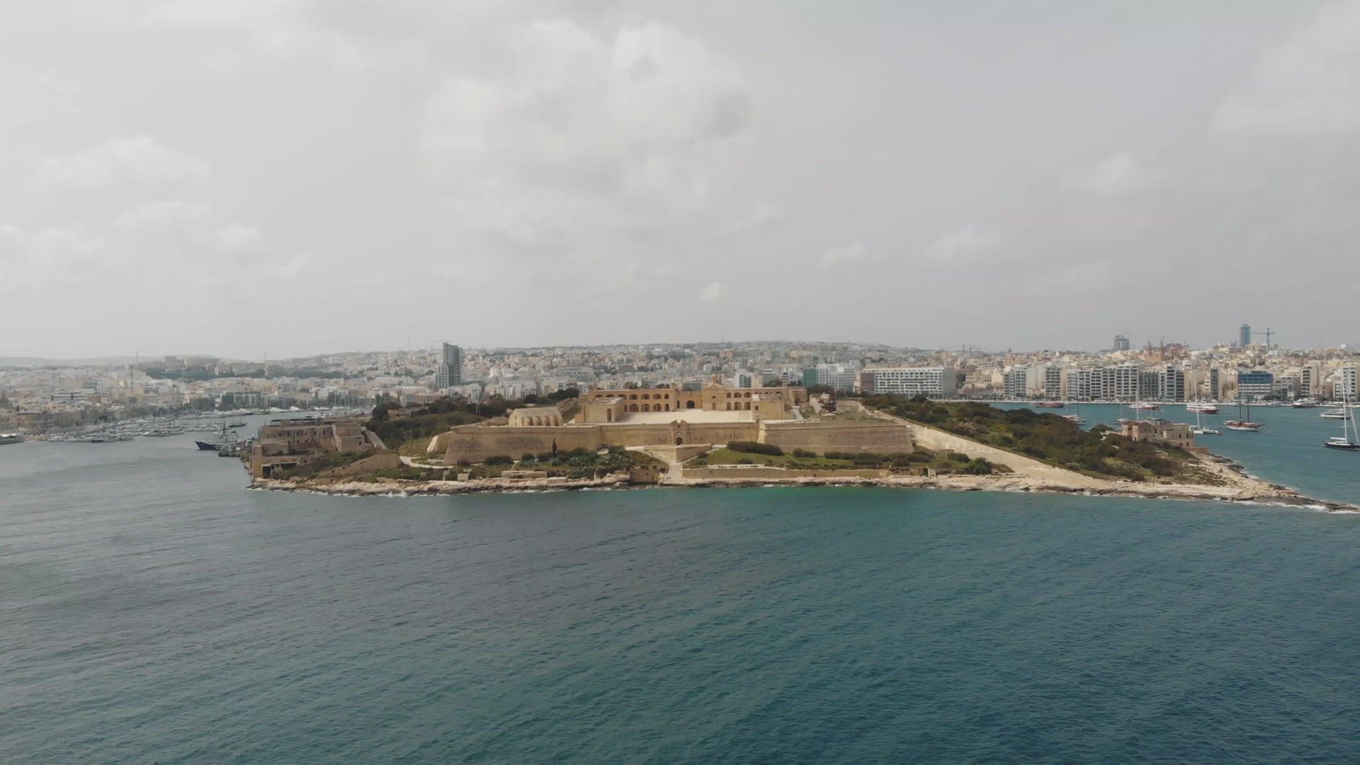 4K Drone Footage of Sliema, a resort town on the east coast of the Mediterranean island of Malta. The waterfront features a long promenade and the 18th-century polygonal Fort Tigné in the south.