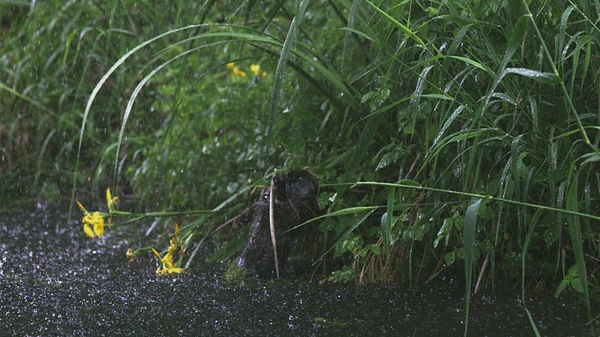 SLO MO CU Enkele Wiericke canal in rain / Driebruggen, Netherlands